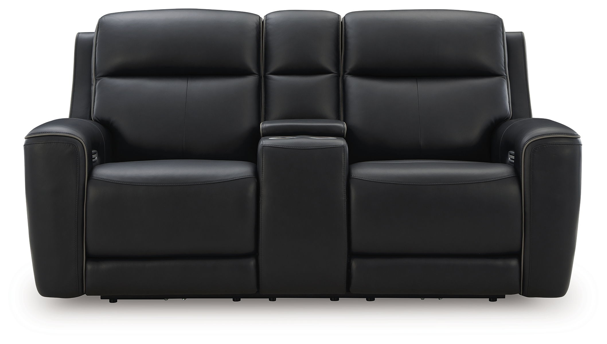 Masterfully blend high style and must-have comfort with this power reclining loveseat. Its clean, transitional look is crafted with luxury in mind, complete with supple top-grain leather in the seating area. Eloquently incorporated into the sleek design are features that take relaxation to the next level, like one-touch reclining, reading lights and wireless charging. Even more indulgent? Heat and massage functions that bring soothing relief from head to toe.