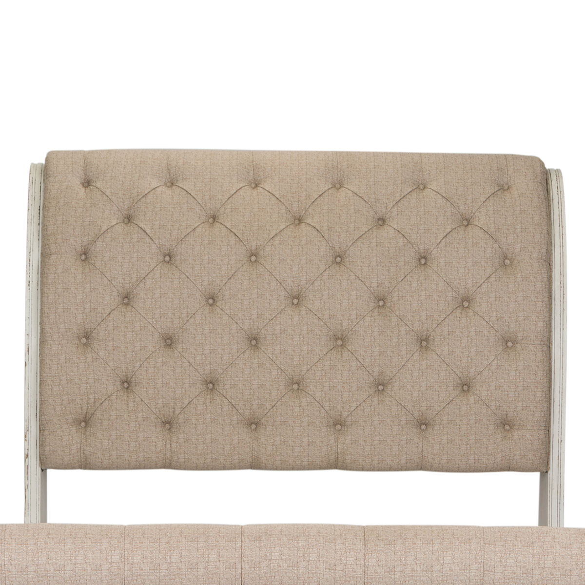Features sleigh design upholstered in beautiful, tufted chenille fabric. Cannot stand alone. Pair with the footboard and rails for a complete bed.