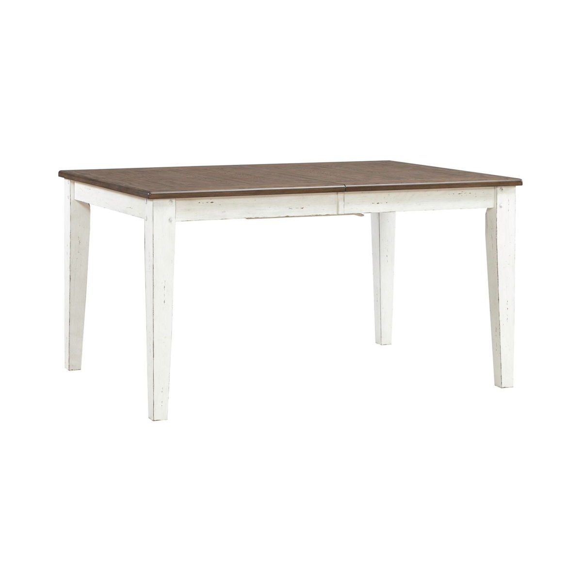 Al Fresco or dining in the outdoors brings to mind an open air natural feel. Al Fresco Casual Dining is a fresh approach to a casual rustic style. Two tone finish with tops of the tables in Graphite and the base in a Whitestone. Tops feature planked design with round/square peg accents. Tapered block legs carry the casual rustic theme of the group.