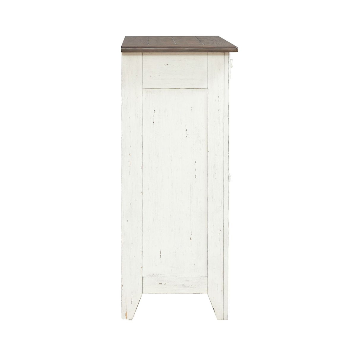Al Fresco or dining in the outdoors brings to mind an open air natural feel. Al Fresco Casual Dining is a fresh approach to a casual rustic style. Two tone finish with tops of the tables in Graphite and the base in a Whitestone. Tops feature planked design with round/square peg accents. Tapered block legs carry the casual rustic theme of the group.