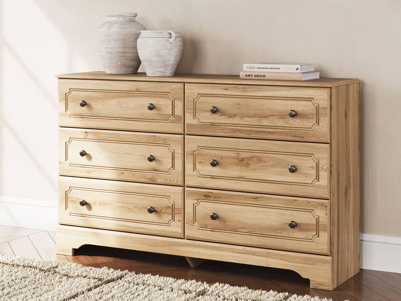 Country rustic. Vintage inspired. However you see it, you’re sure to be charmed by this dresser with mirror. Adorned with chic drawer knobs and a warm oak grain finish, it offers a relaxed mix of picturesque aesthetics. Its storage space gracefully welcomes clothes, linens and other bedroom necessities. With an air of easygoing elegance, this set lets you drift away to a simpler time and place.