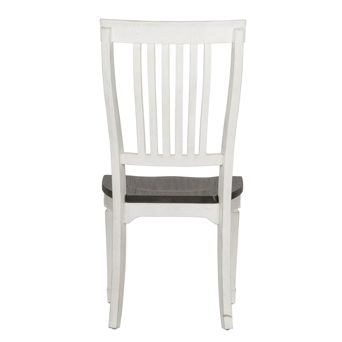 Sit in comfort and style with the Allyson Park slat back side chair. Crafted of poplar and rubberwood solids, this piece features a wire brushed finish, nylon chair glides to protect your flooring, curved wooden seat for added comfort, a slat back, and is anchored by square tapered legs. This chair is perfect for creating a classic look while maintaining a casual feel.