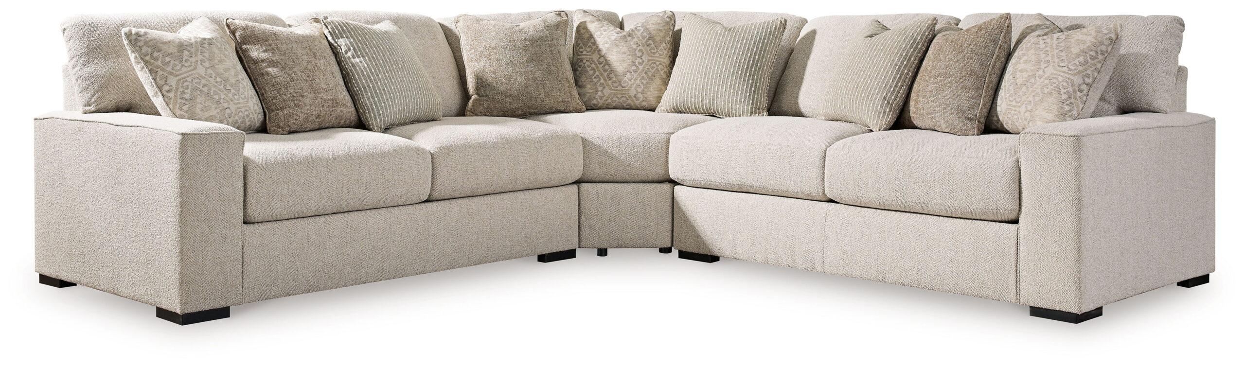 Reminiscent of a fine, subtly patterned herringbone jacket, this casually elegant sectional offers contemporary style in spades. A distinctive curved shape provides plenty of leg room, while soft feather-blend cushions maximize relaxation. Why skimp on comfort and style? With this sectional, you have space to lounge solo or hang out with friends and family.