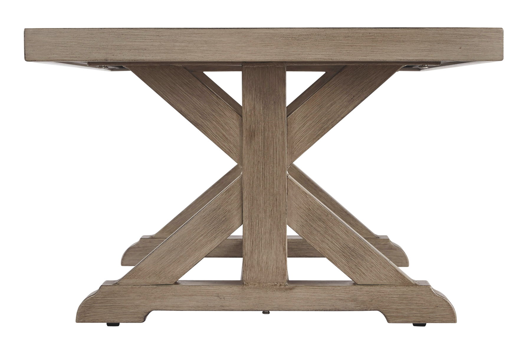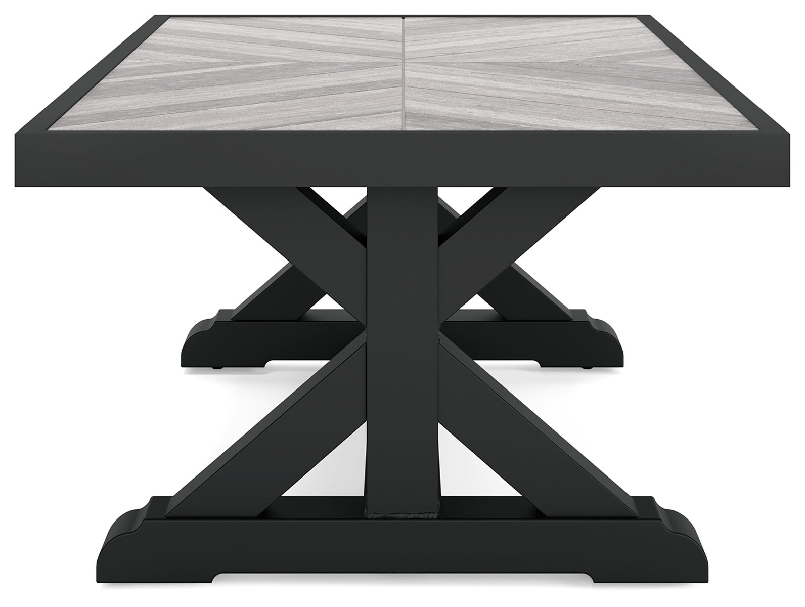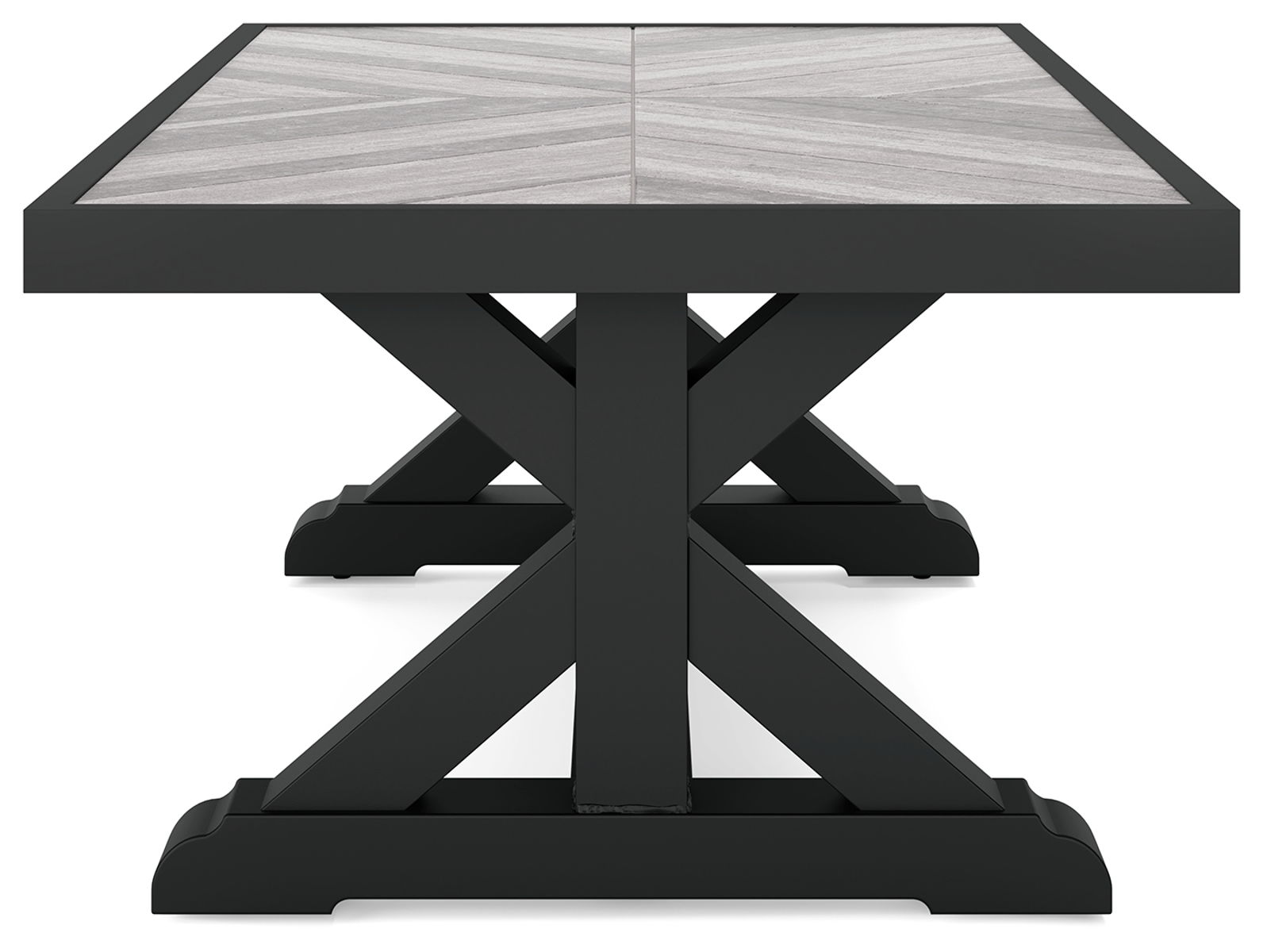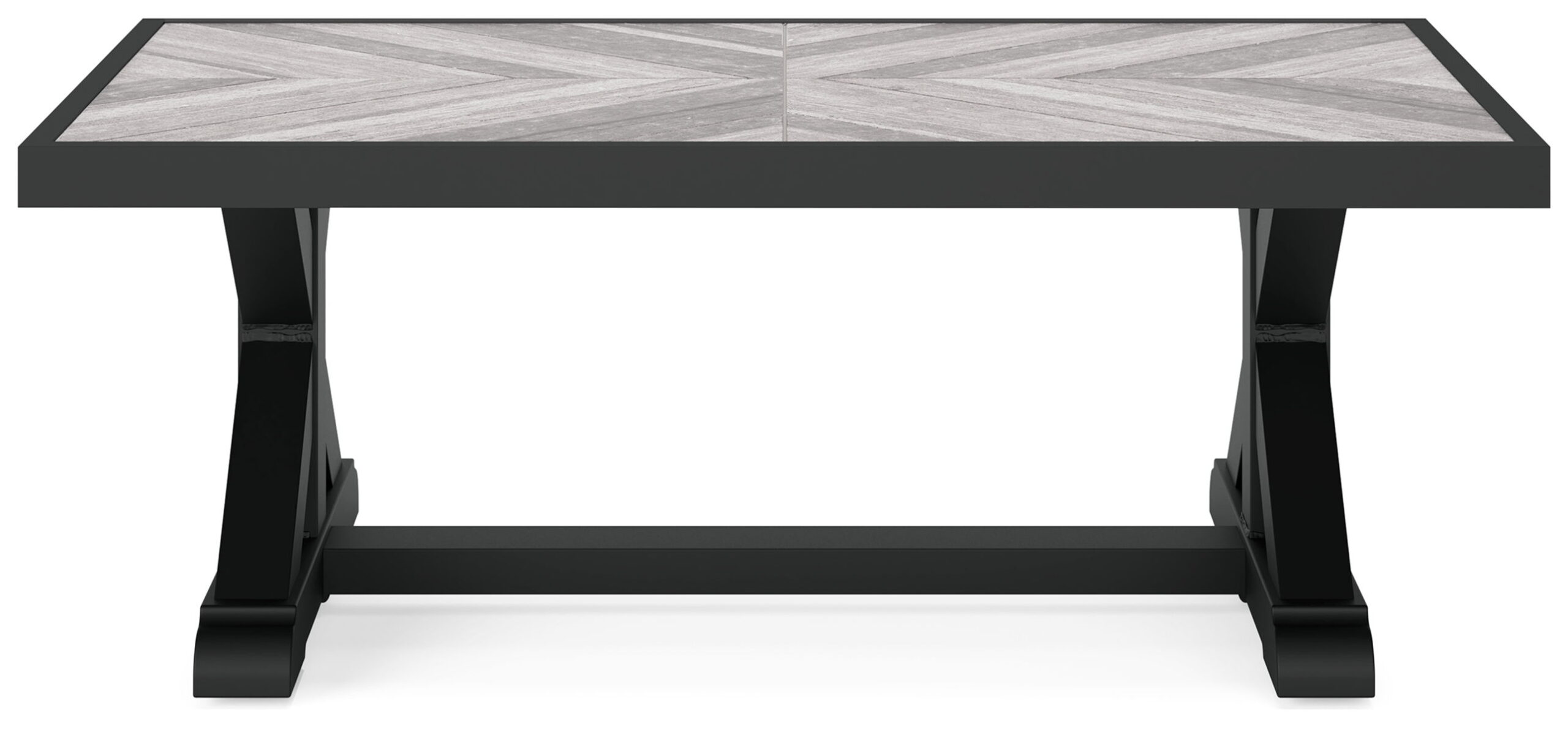 Sporting an easy-on-the-eyes look inspired by driftwood, this coffee table elevates the art of indoor-outdoor living. Beautiful and durable enough for indoor and outdoor use, this high-style/low-maintenance table charms with X-leg farmhouse styling and wows with a thick porcelain table top that’s a natural complement.
