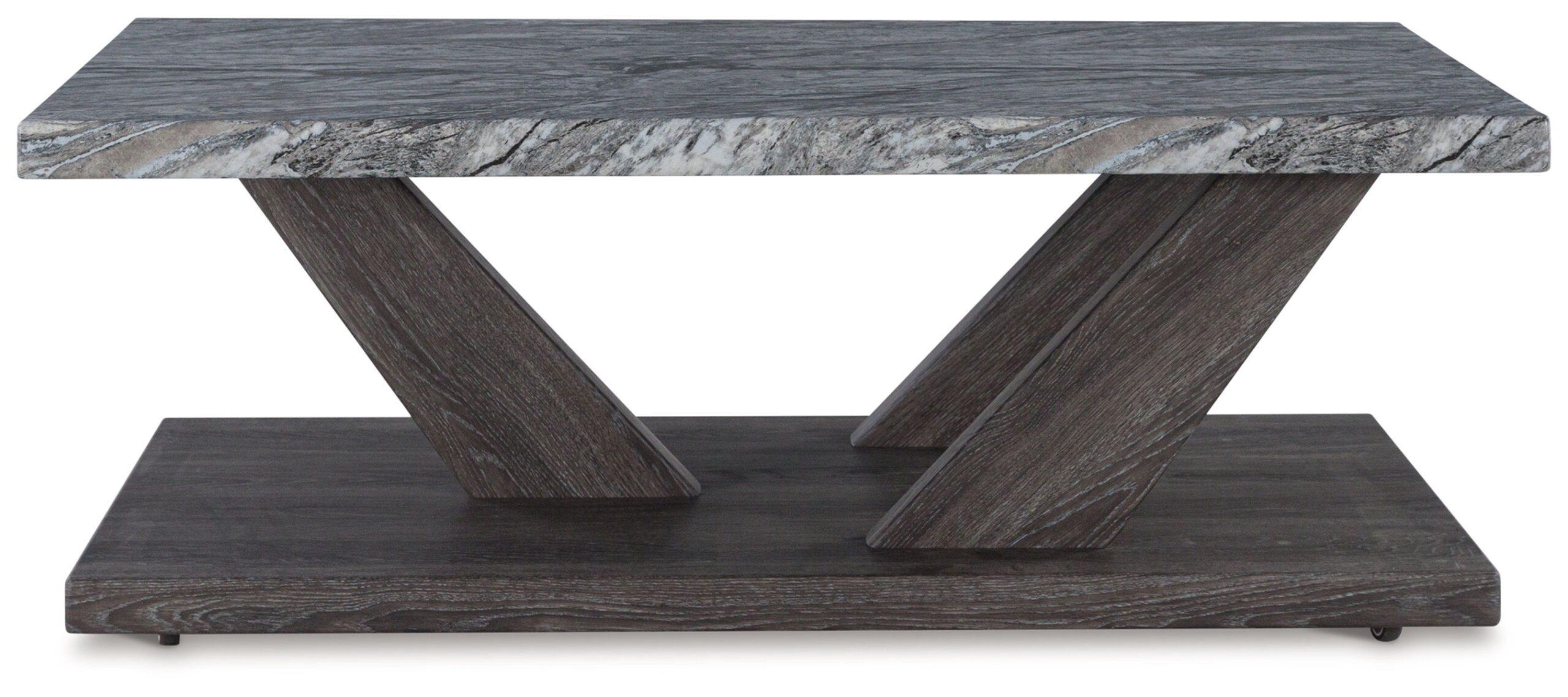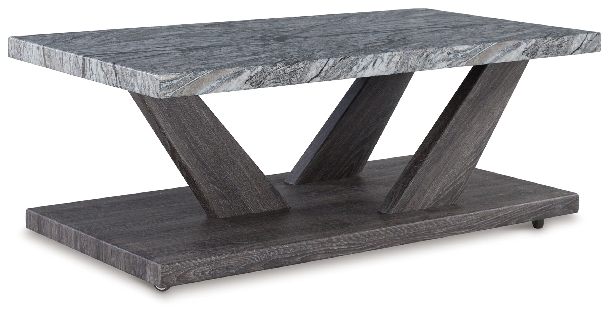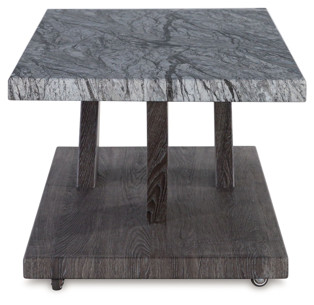 Live in luxurious harmony (without breaking the bank) when you stage this table set in your seating area. Dynamic weathered gray bases act as the foundation for faux gray marble tops. Très chic. Your contemporary living room has never been so stylishly coordinated. And for must-have function, the coffee table’s built-in casters have you covered.