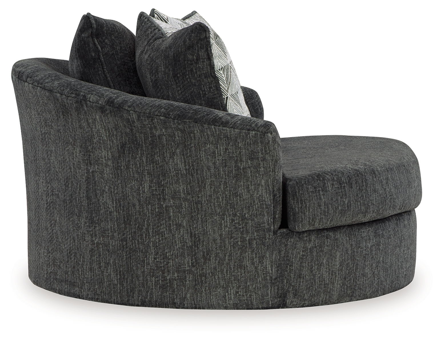 Bring fashionable function to the forefront with this oversized swivel accent chair. The transitional design gets a dash of flair with a 360-degree swivel motion. Dress it up or down. In a richly versatile neutral, this chair appeals to a variety of style personalities.
