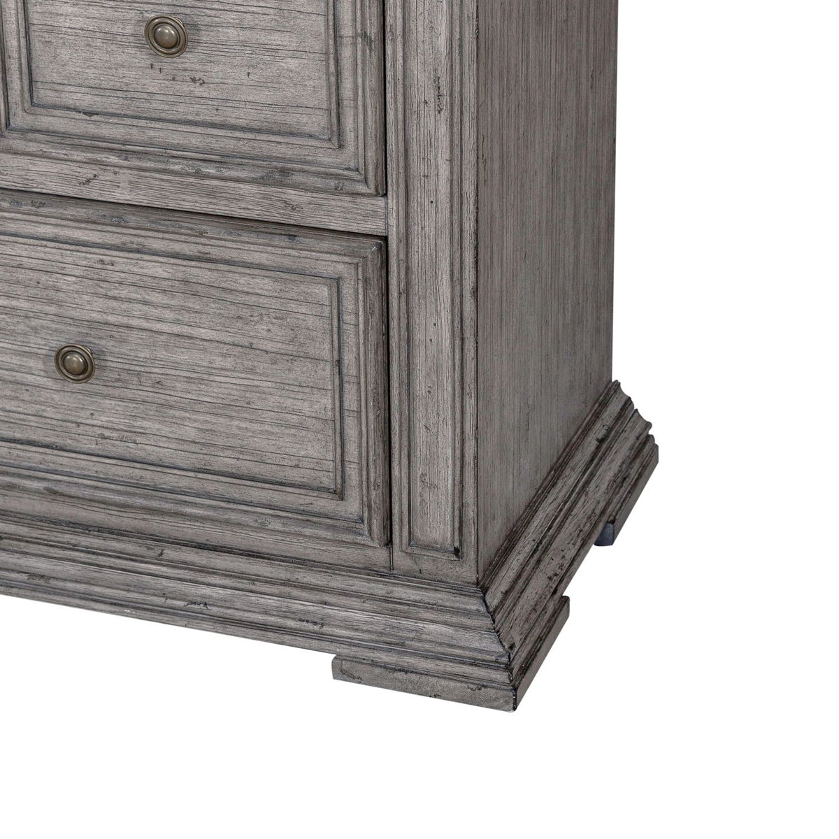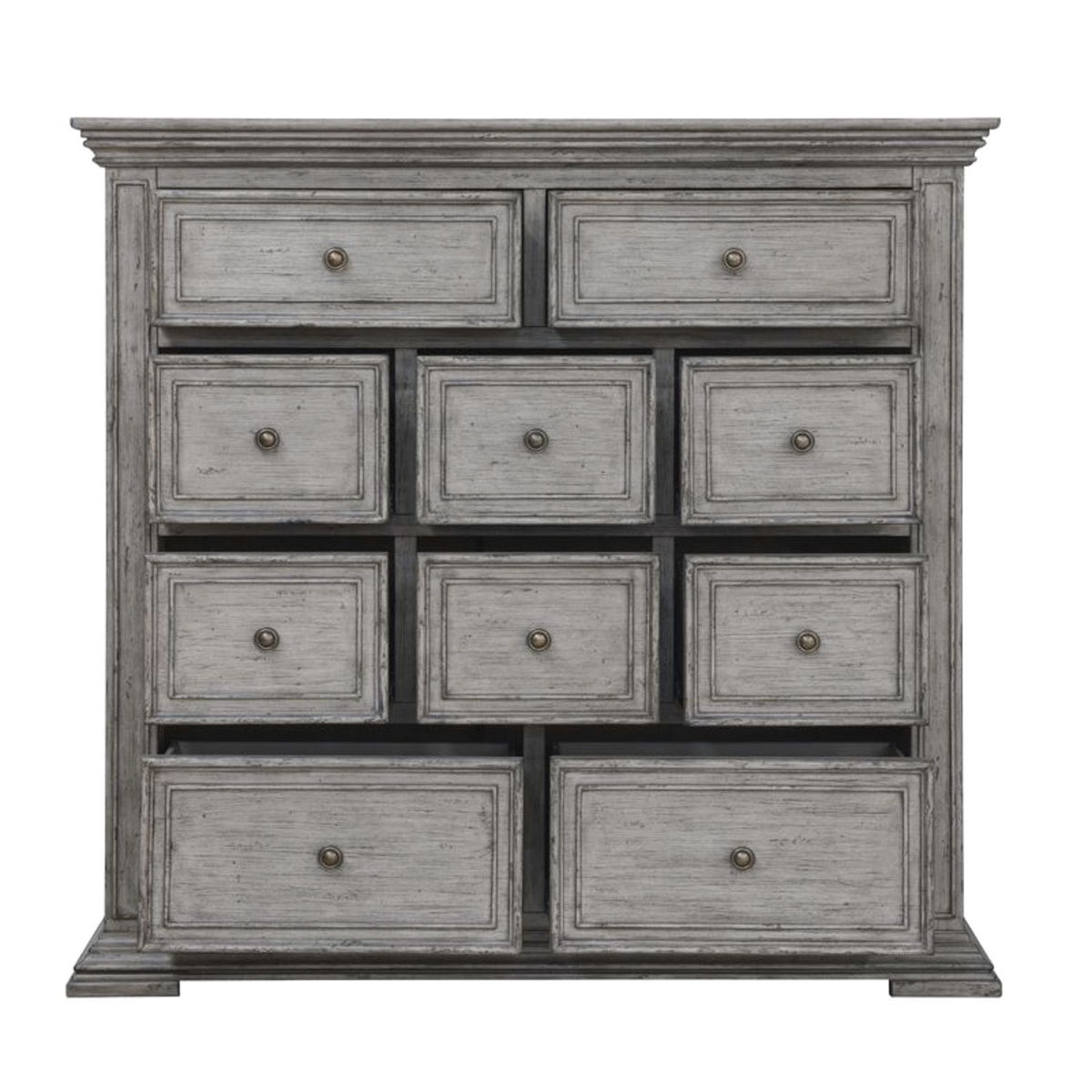 The Big Valley Chesser offers a design that perfectly combines tradition and today’s preferred modern style, resulting in the best of both worlds. Crafted of rubberwood solids and birch veneers, this piece features a brownstone finish with heavy distressing and rub thru, ten drawers of varying sizes, graduated bead molding creating architectural interest, full extension wood framed drawers with premium felt lined top and cedar lined bottom drawers, and is accented with antique pewter knob hardware. Big Valley is traditional living in a design that combines for a grand feel of the past with today’s luxurious lifestyle.