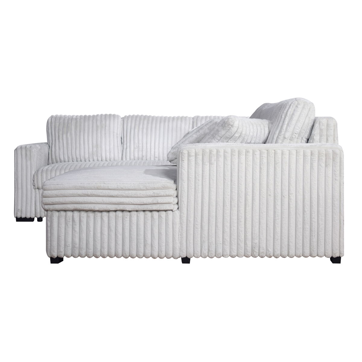 The Bliss Sectional Sleeper with Storage Chaise brings comfort and practicality together in a cozy, inviting design that’s perfect for any home. Built with sturdy hardwood and plywood frames, it offers a reliable foundation that lasts. The plush, wide-ribbed corduroy fabric feels irresistibly soft, wrapping you in warmth as you unwind. With plenty of seating for family gatherings or lazy days, this spacious sectional also comes with matching pillows for an added touch of comfort. The pull-out bed and chaise with hidden storage for blankets and pillows make it ideal for welcoming overnight guests or enjoying a quiet afternoon nap. Thoughtfully designed with built-in USB chargers, your devices stay powered without disrupting your relaxation. The Bliss Sectional blends modern functionality with a welcoming, homey vibe, making it a perfect addition to any living space.