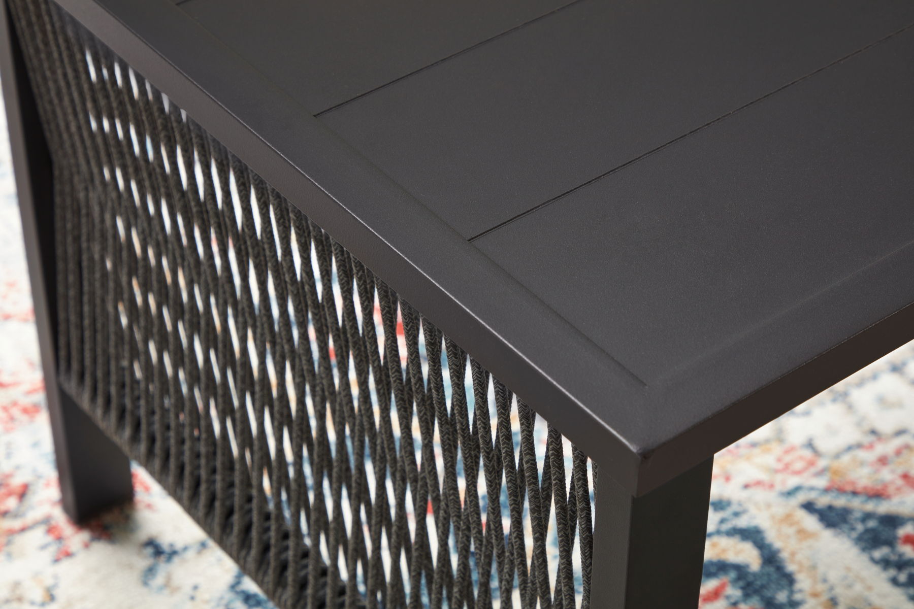 Ready to bring indoor style to your outdoor space? This beautiful 4-piece table and chair set is the perfect choice for creating a cozy patio retreat. A unique rope design lends the loveseat and lounge chairs a light and airy feel, while plush cushions wrapped in cleanable, UV-resistant fabric provide deep-seated comfort. And the table is just the spot to rest cocktails and coffee cups while you enjoy warm days and cool evenings with friends and family.