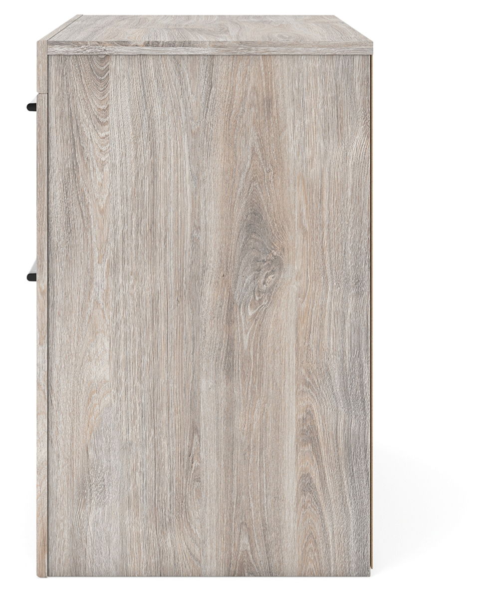 With its rich, warm finish over replicated wood grain, this casually cozy nightstand evokes the tranquil vibe you long for in your dream destination. Both functional and versatile, its two roomy drawers with large-scale handles offer easy access to hidden storage for bedtime essentials and so much more.