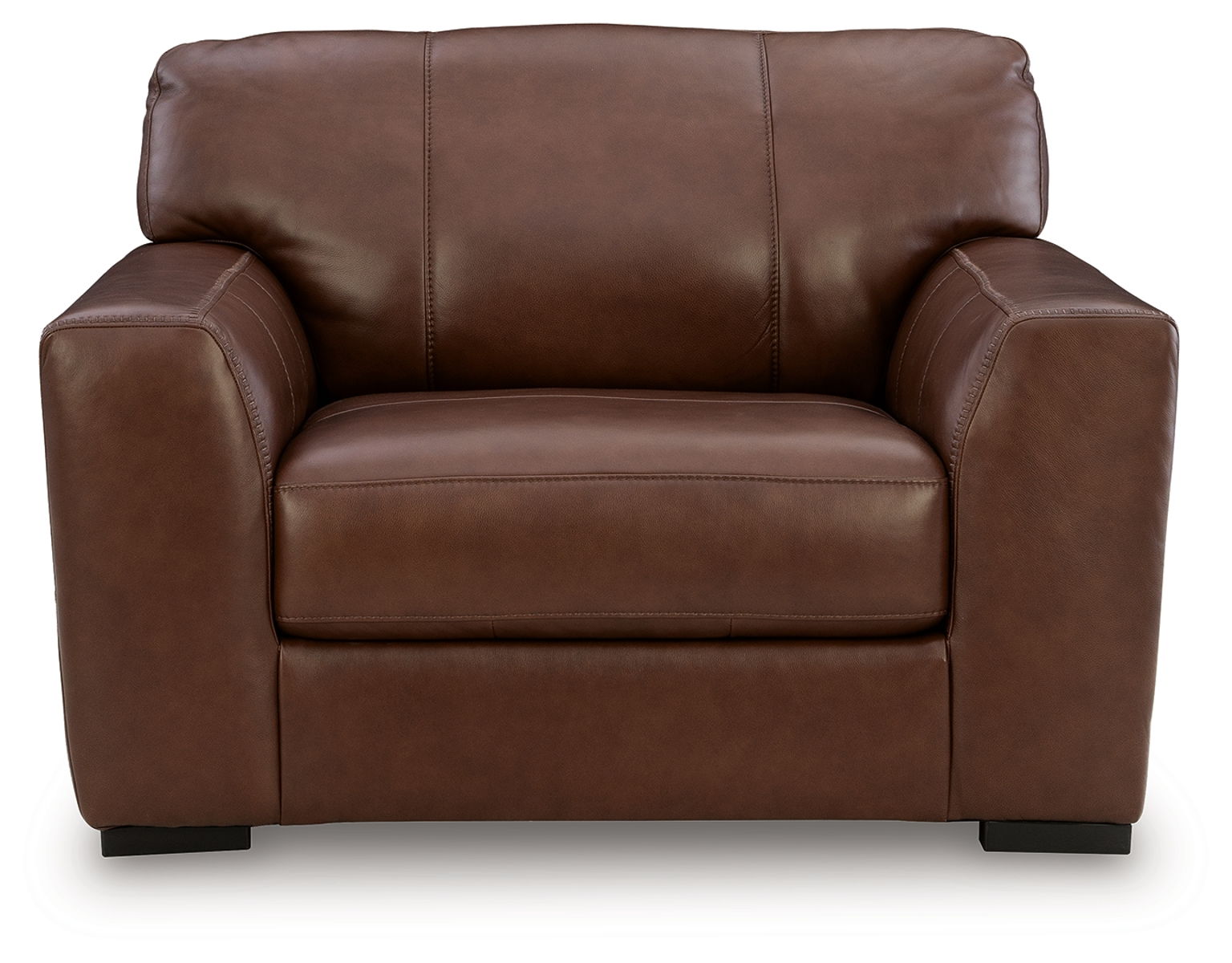 Effortlessly stylish, indulgently comfortable. This oversized chair encourages everyday relaxation with invitingly plush, extra-spacious cushions. It embodies affordable luxury, pairing the sleek appeal of top grain leather in the seating area with expertly matched faux leather on the sides and back. Suiting spaces from casual to contemporary, the chair’s universal appeal makes staging your space nearly effortless.