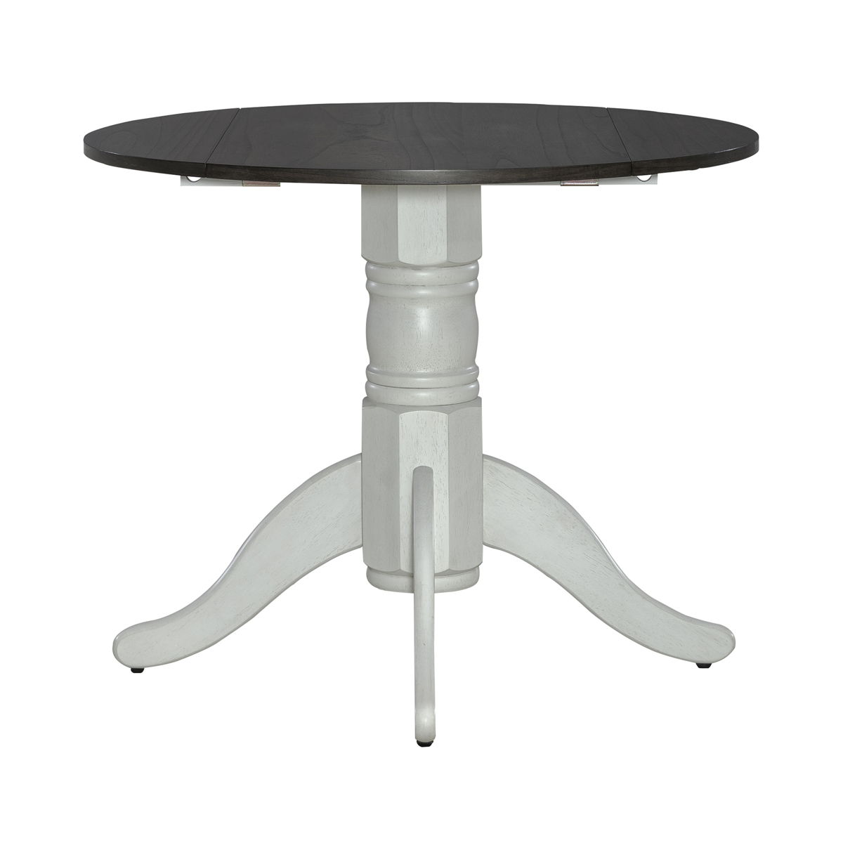 Feel at home with the Brook Bay drop leaf table set. Crafted with excellence using rubberwood solids and mindy veneers, this table features a two-tone Carbon Gray and Textured White finish. There are two 8” drop down leaves on the top, allowing the user to save space when needed. The pedestal base is heavy turned and is supported by shaped splayed feet. Feel comfortable and elegant at the same time with the Brook Bay drop leaf table set.
