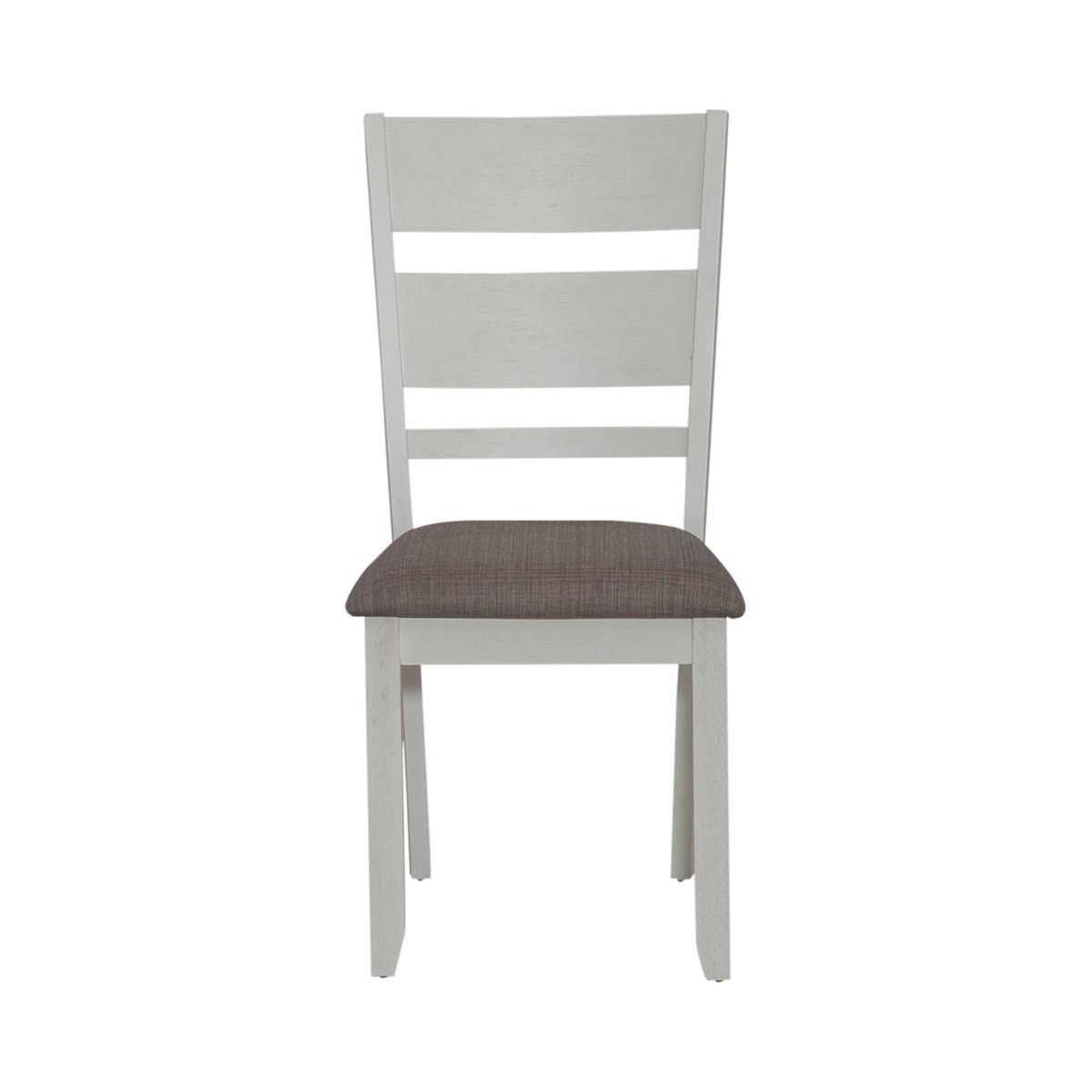 Feel at home with the Brook Bay slat back upholstered side chair. Crafted with excellence using rubberwood solids, this chair features a Textured White finish. The seat is upholstered in 100% polyester Grey Linen fabric. The block tapered legs feature nylon chair glides to protect your flooring. Feel comfortable and elegant at the same time with the Brook Bay slat back upholstered side chair.