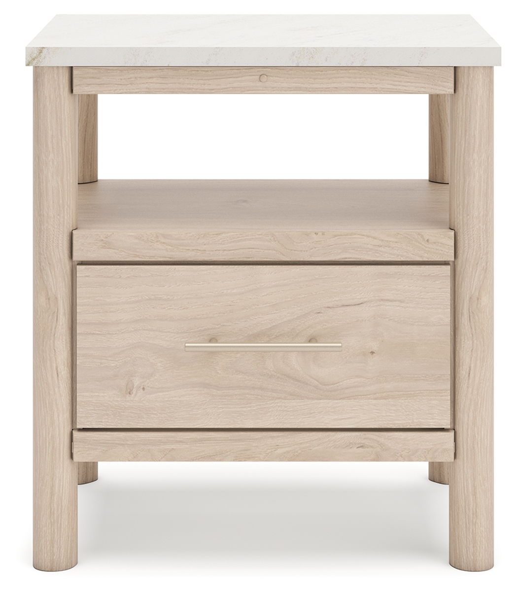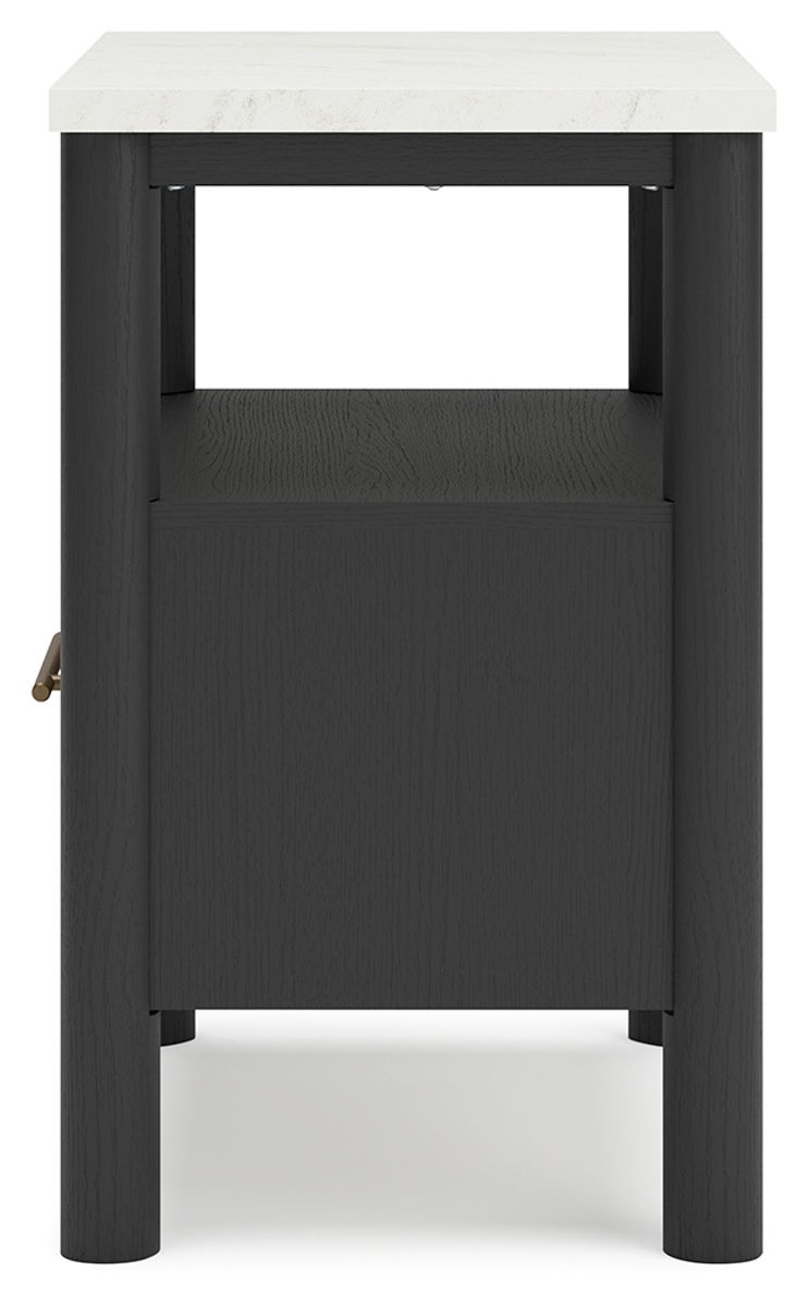 Transform your bedroom with this nightstand. With its clean lines and replicated marble top, it exudes a minimal and sophisticated boho style. Built-in lighting and charging capabilities add simplicity and ease to your everyday tasks. Tailor your space and create the perfect environment for sweet dreams.
