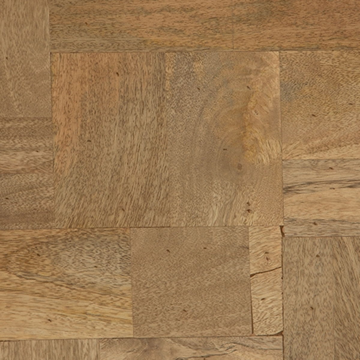 With its clean lines and sense of simplicity, this console table is a master study in modern style. We love how the contrasting patchwork patterned post and the dark brown finish captivate the eye. The lower shelf enhances the open and airy design and provides great display space.