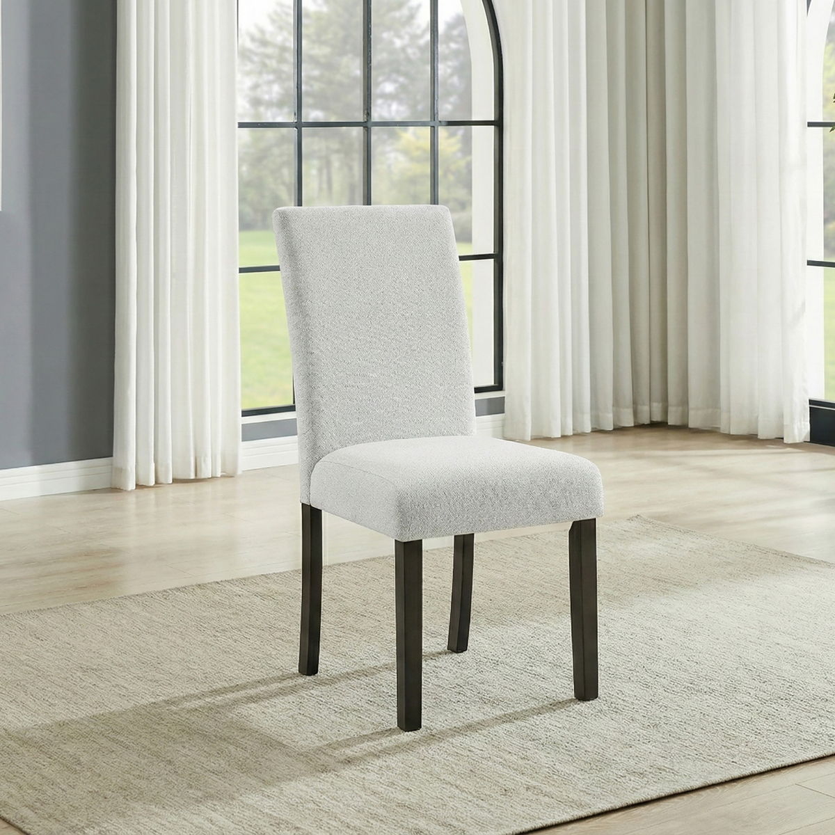 The Carissa Dining Chairs in Stone blend durability with modern charm. Crafted with solid Rubberwood legs for lasting strength, each chair features fully upholstered seats and backs in soft, easy-care 100% polyester fabric. Plush memory foam cushions offer supportive comfort, making every meal feel like a treat. Finished with deep espresso legs, these chairs bring contemporary elegance and inviting style to any dining space.