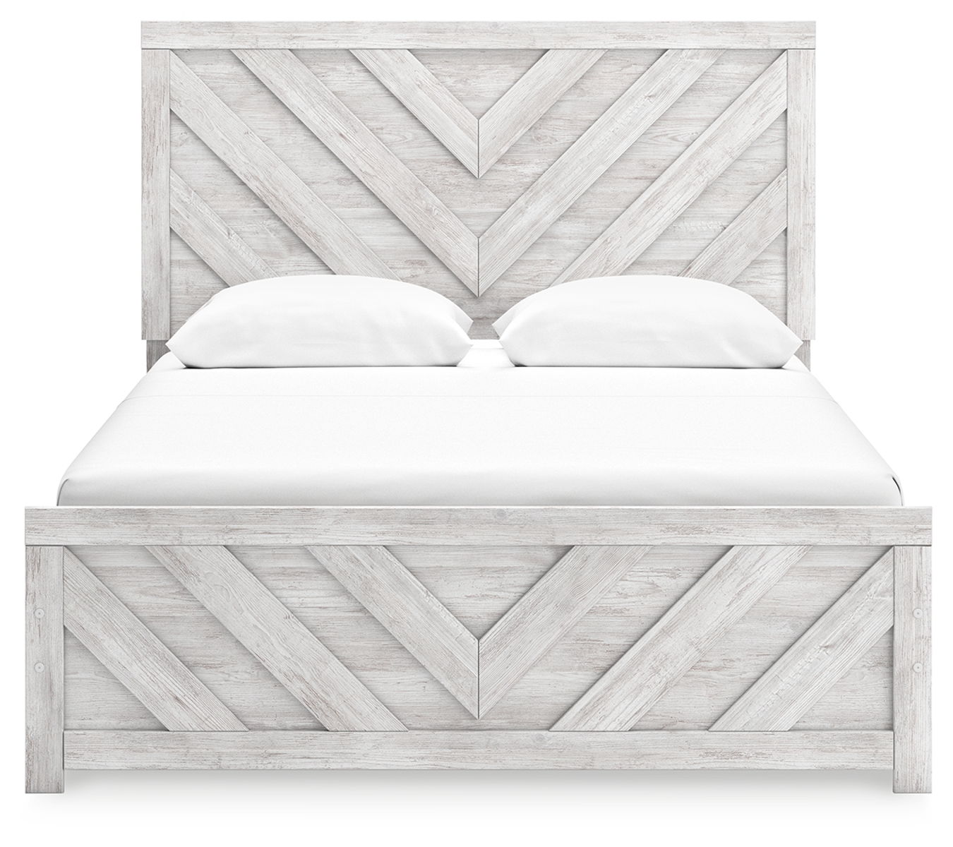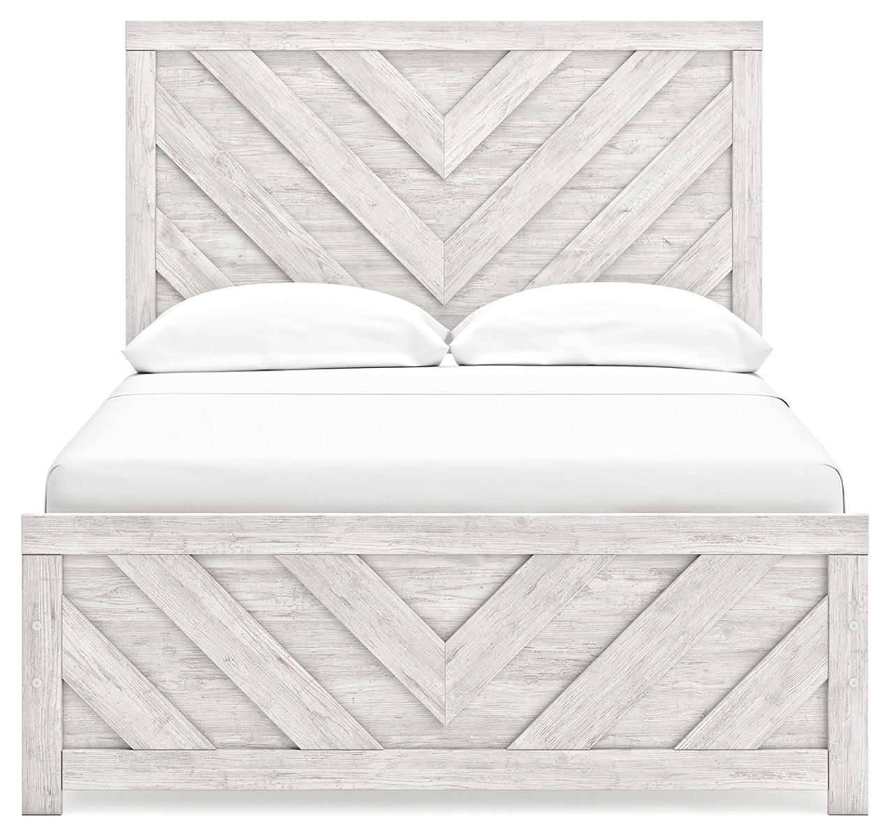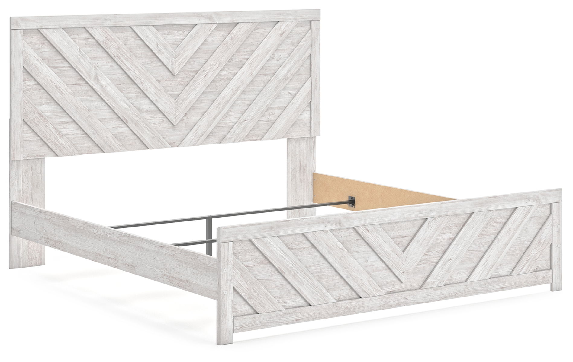 Charmingly designed, this panel bed embraces the aesthetics of countryside living and repurposes them for modern settings. Its paint, replicating the wear and tear of time, appeals to your love of vintage character. And a chic chevron pattern on the headboard and footboard keeps your bedroom effortlessly on trend.