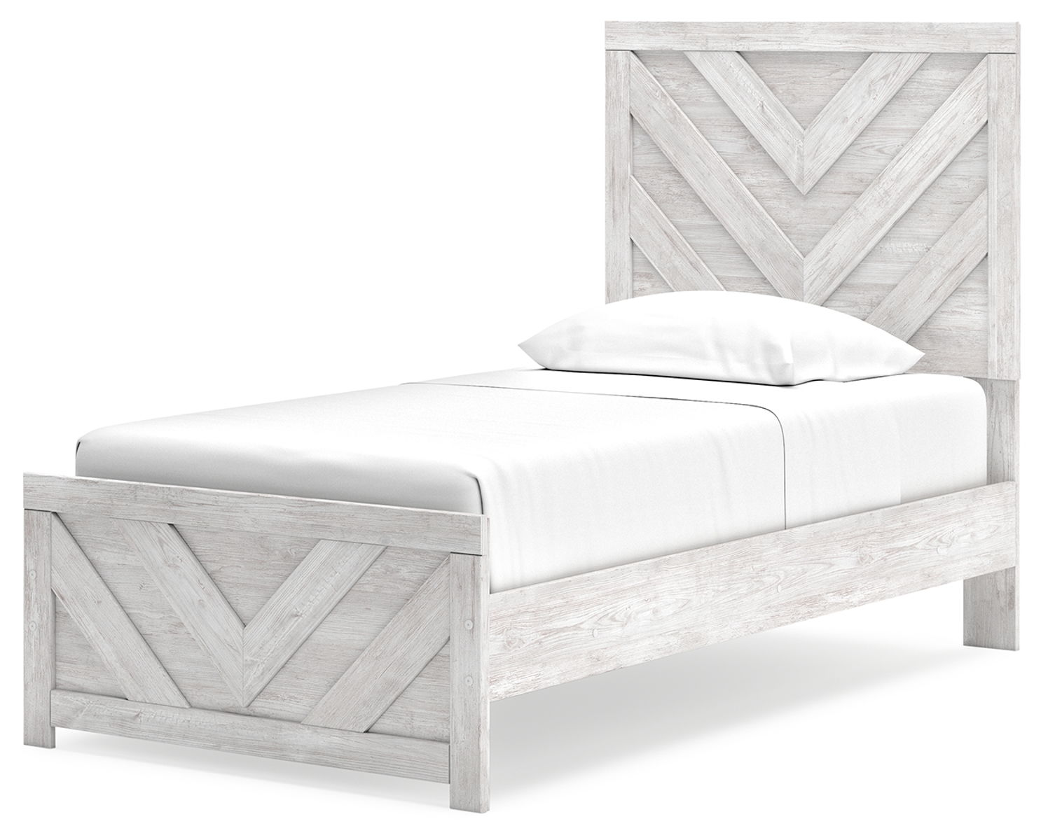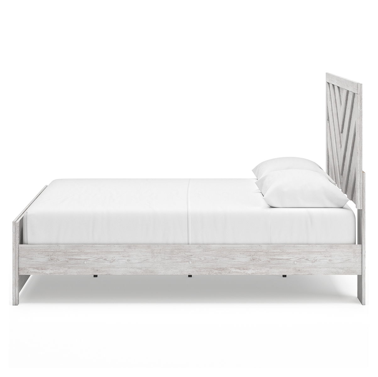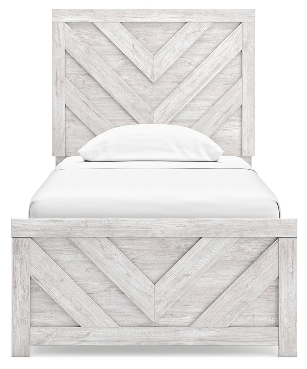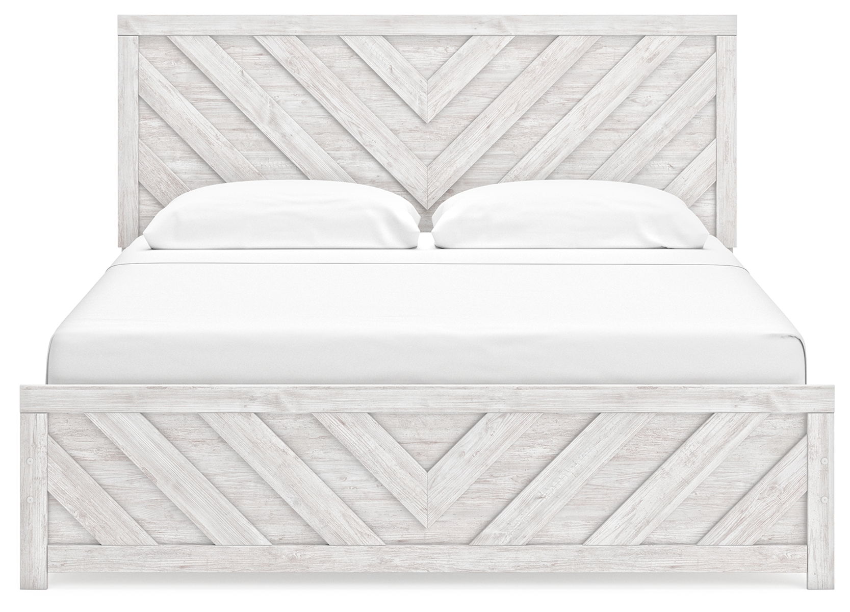 Charmingly designed, this panel bed embraces the aesthetics of countryside living and repurposes them for modern settings. Its paint, replicating the wear and tear of time, appeals to your love of vintage character. And a chic chevron pattern on the headboard and footboard keeps your bedroom effortlessly on trend.