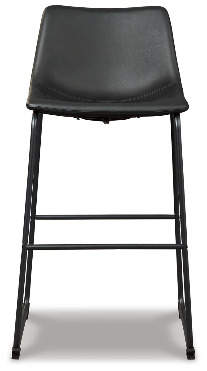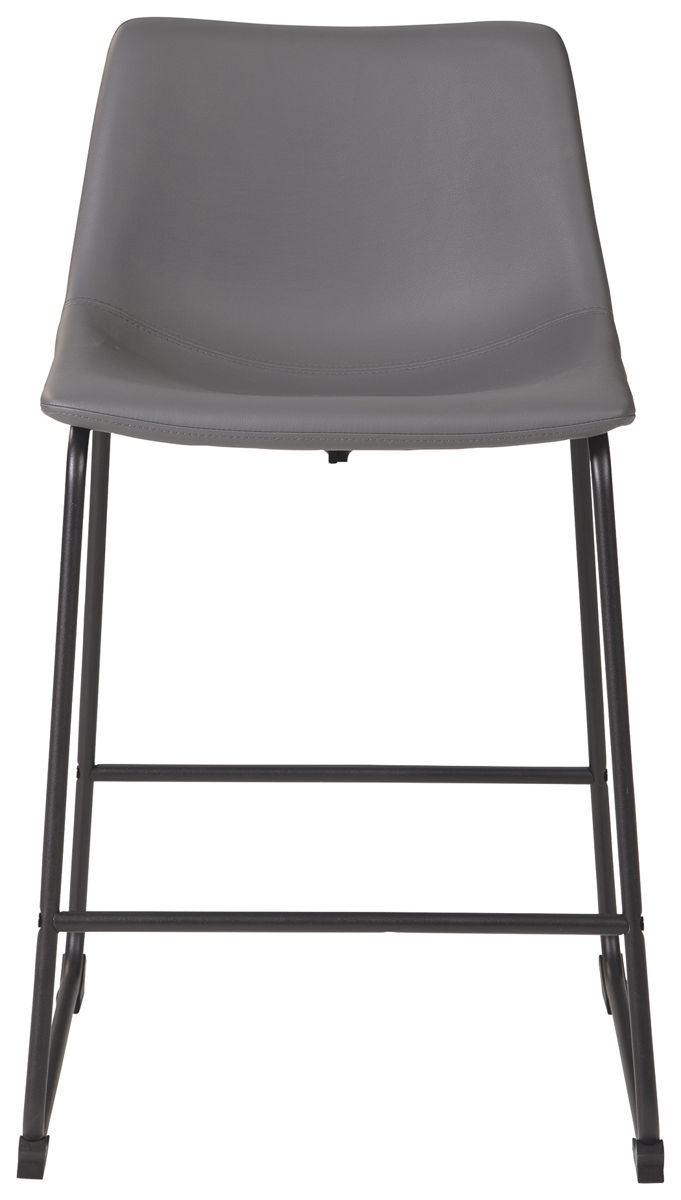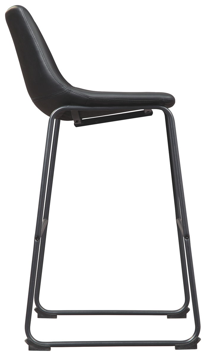 With its distinctive contoured bucket seat and tubular metal base, this upholstered bar stool serves up a fresh twist on mid-century inspired style. Practical faux leather has a charmingly vintage tone. What a timeless look for eat-in kitchens and casually cool dining rooms.