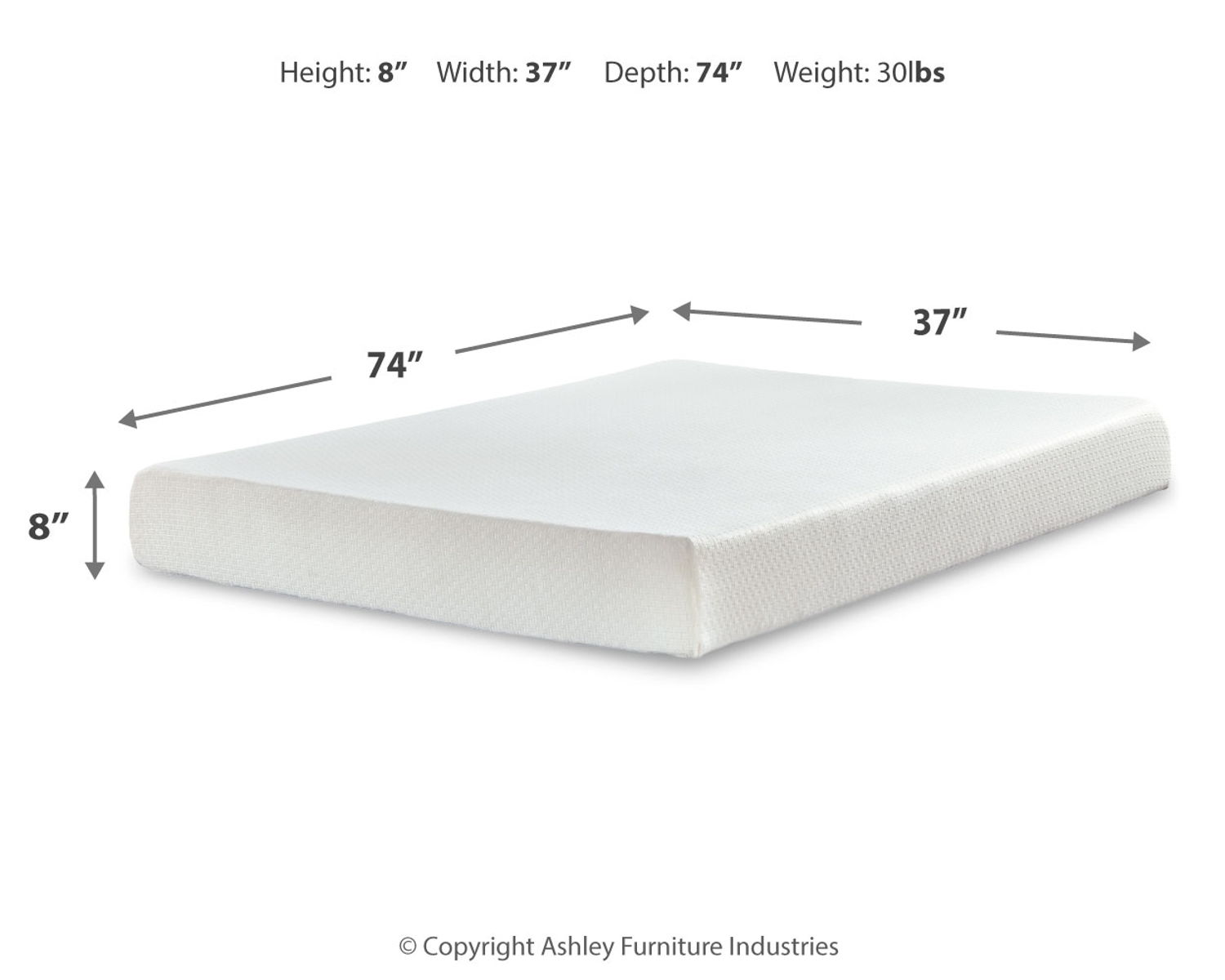 When it comes to your comfort, discover this 8-inch mattress. Its memory foam contours to your body, delivering amazing support, pressure relief and comfort. The memory foam layer is supported by a thick layer of firm support foam. This helps reduce motion transfer so you and your partner can enjoy an undisturbed sleep. This mattress arrives in a box for easy setup. Foundation/box spring available, sold separately.