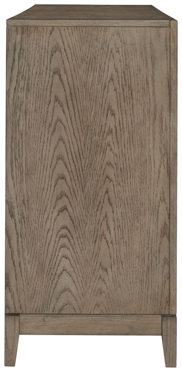 You want your dining room to reflect your refined sensibilities while remaining forward-thinking in design. The simple silhouette of this dining server opens the door to a dining room with the curated look and subtle flair you desire. The piece’s elegant waxy gray finish gets an added touch of luxury with striking metal bar pulls in a light pewter tone. Two double door cabinets, each with an adjustable shelf, allow you to store in streamlined style.