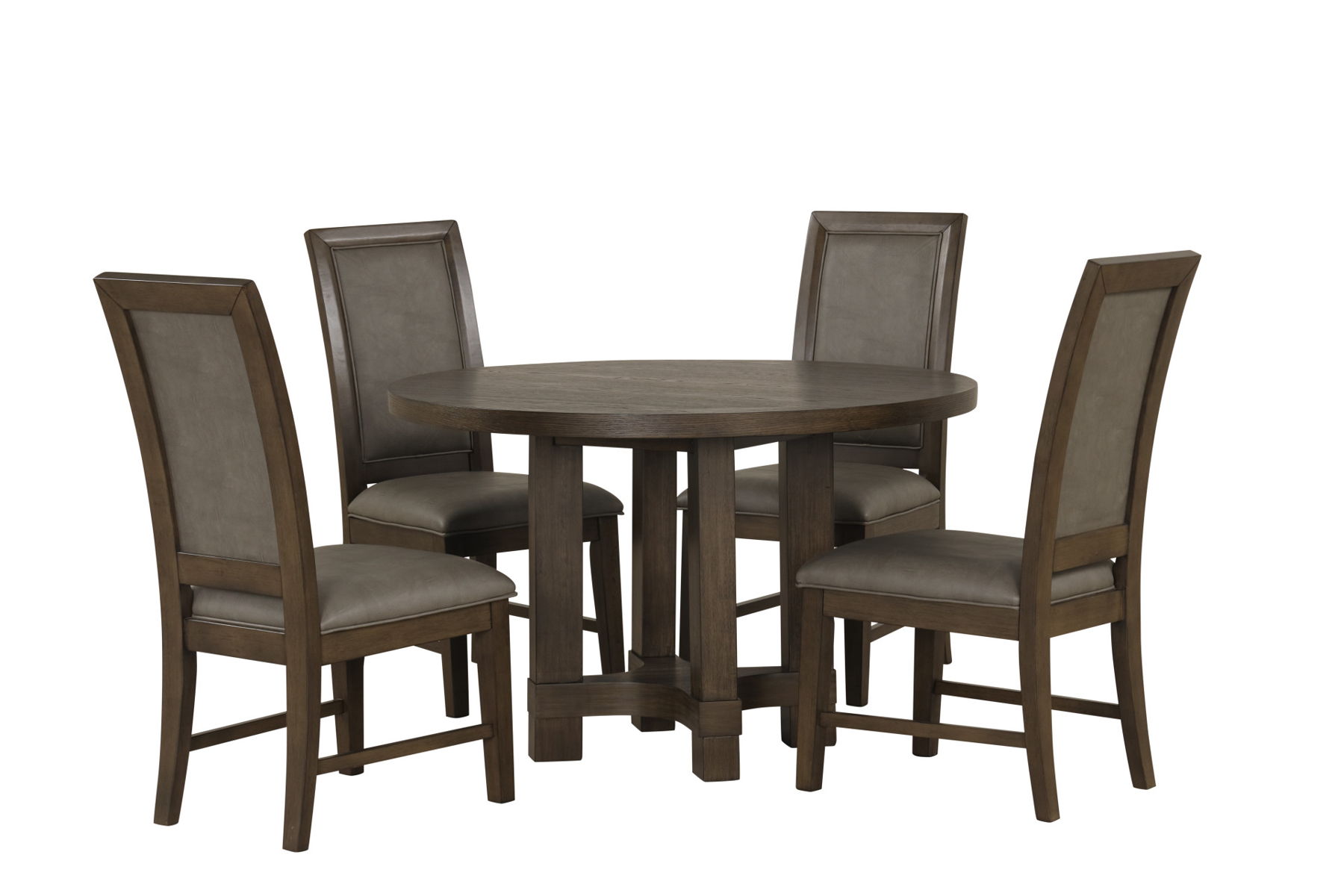 The Cityscape Round Wood Dining Table offers both durability and style, making it a versatile addition to any dining space. Crafted from a blend of resilient Rubberwood solids, manufactured woods, and real Oak veneers, this table highlights the timeless beauty of natural wood while providing lasting strength. Its sleek lines and dark walnut finish lend a modern, industrial-inspired look that complements a variety of décor styles. The round design comfortably seats up to four people, creating an ideal setting for easy conversation during meals. With its robust construction and sophisticated aesthetic, this dining table is built to serve as a centerpiece for everyday dining or special occasions.