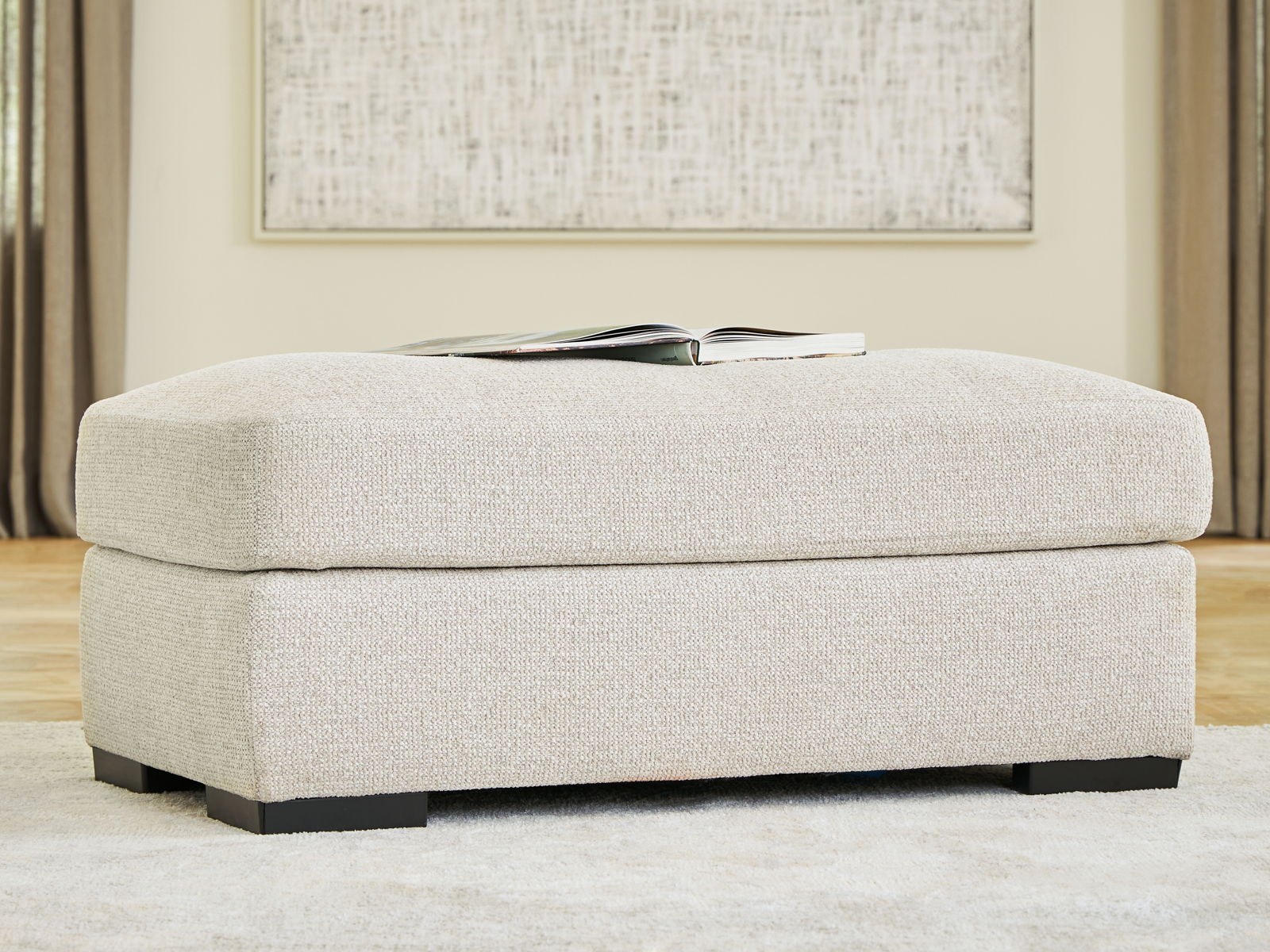 A triumph in transitional design, this ottoman invites you to indulge in complete comfort. The contemporary yet classically styled piece is covered in oh-so-soft boucle upholstery for a sense of stately sophistication. And its firmly cushioned top makes it a practical seating alternative.