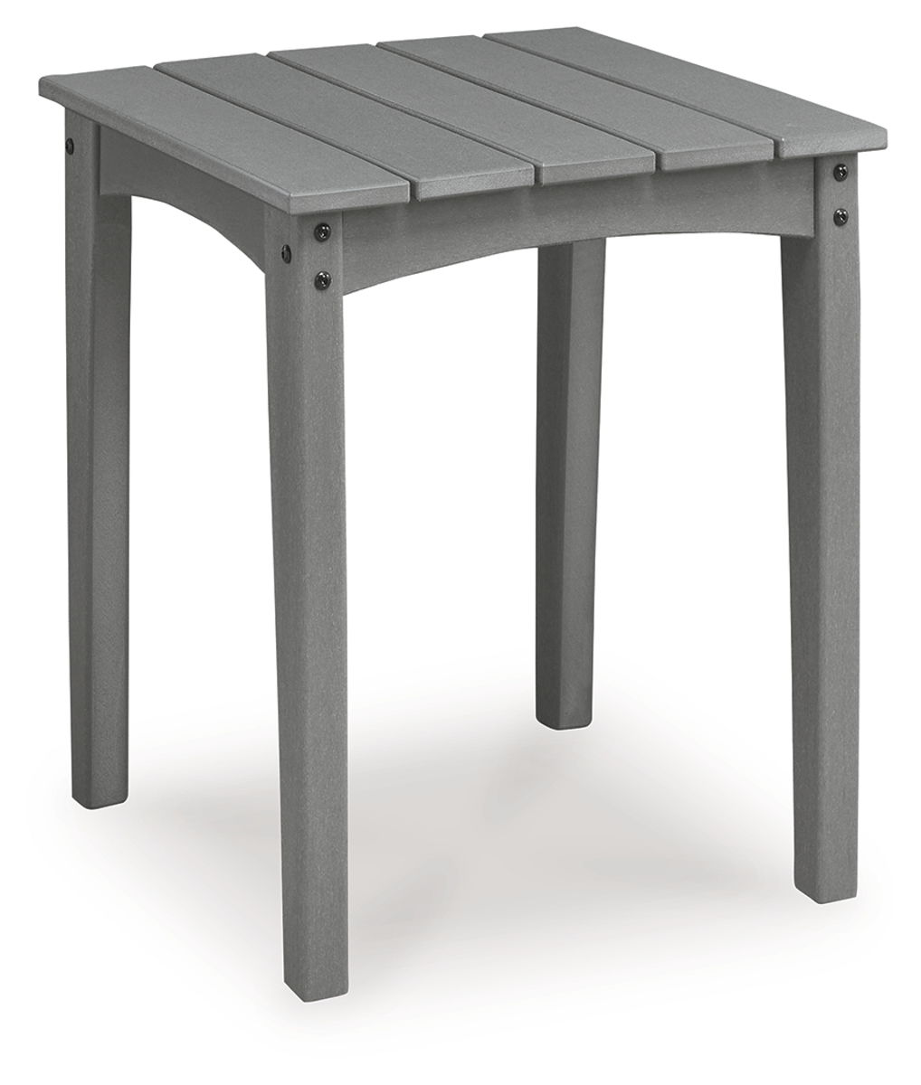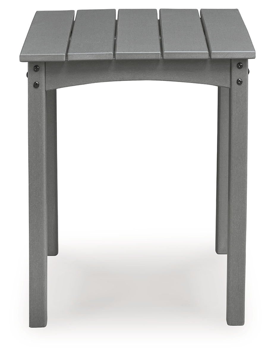 This outdoor end table prioritizes versatile style and comfort, all while providing the durability you need alfresco. Crafted with a sturdy wood-look material in gray, it withstands the elements with ease. A slatted design that sheds rainwater rounds out the piece with added function.