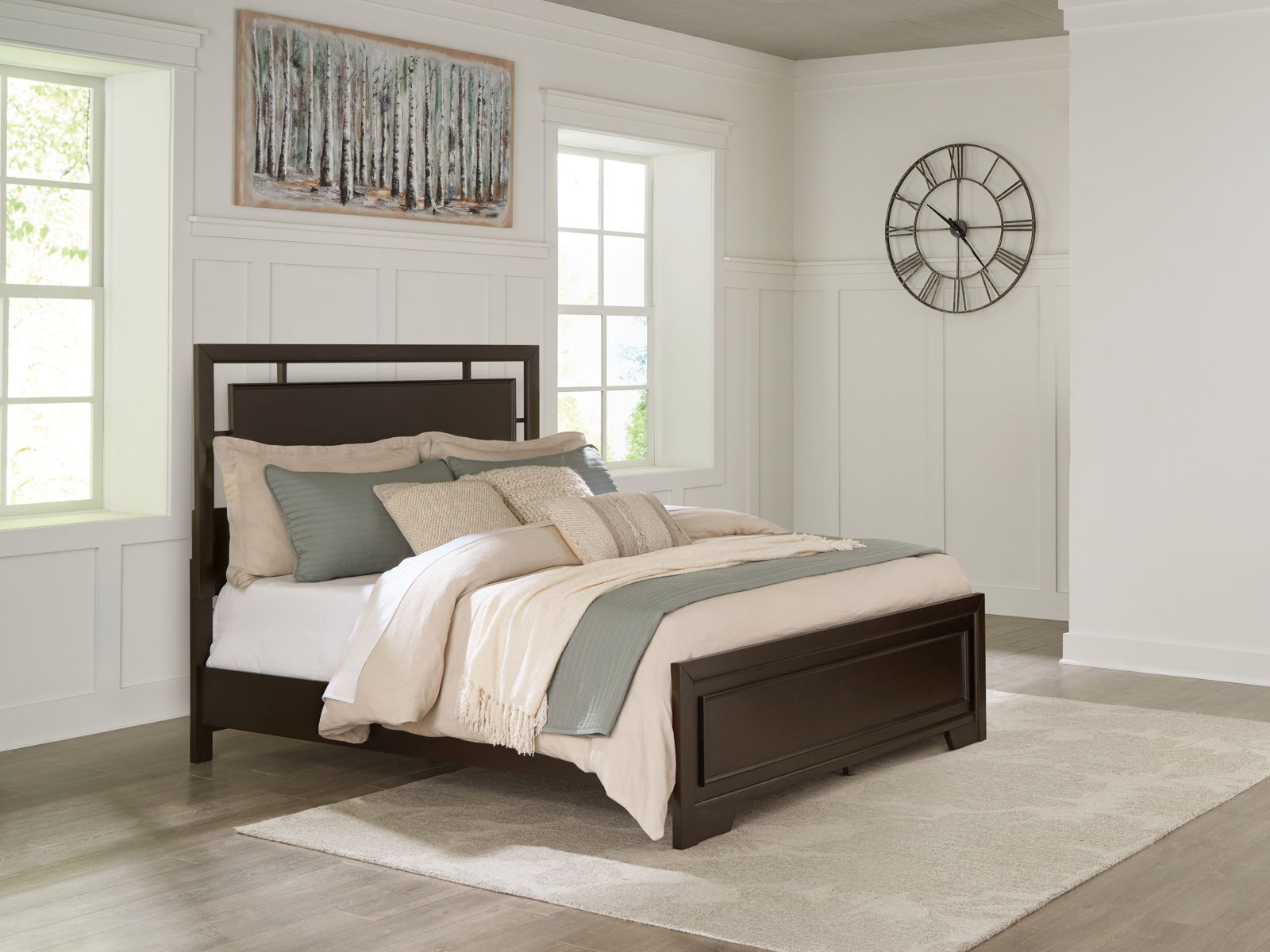 If you like the idea of a richly versatile transitional look that feels fresh and contemporary—with a timeless sensibility—then feast your eyes on this panel bed. The modern headboard’s floating panel design blends with the classic-inspired picture frame footboard to create a stunning look that’s neither too stuffy nor too trendy. Such a refined way to wake up your bedroom style.