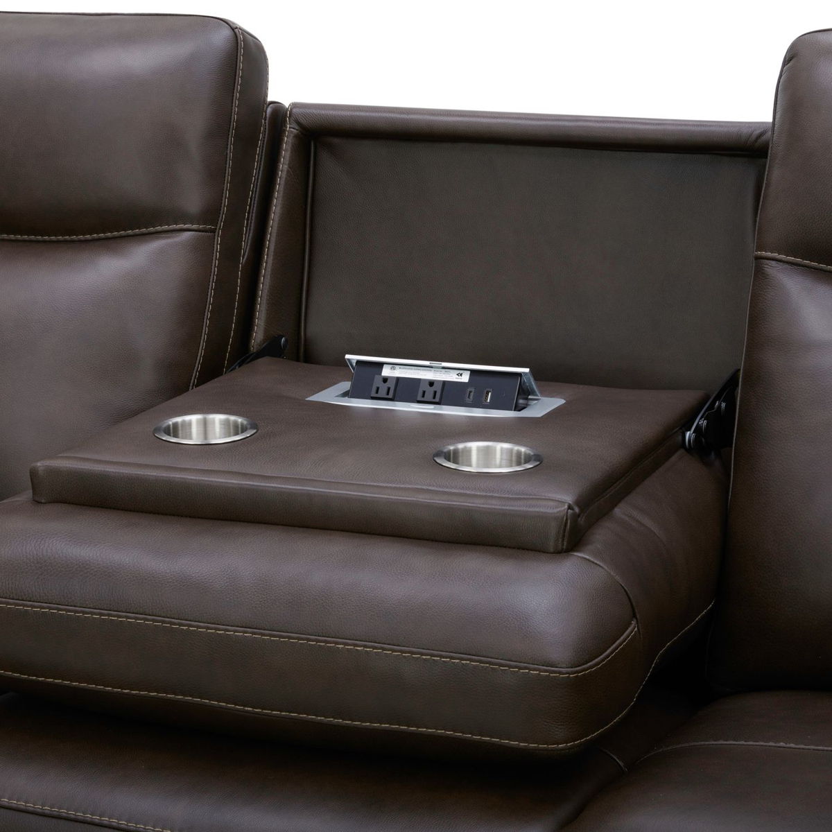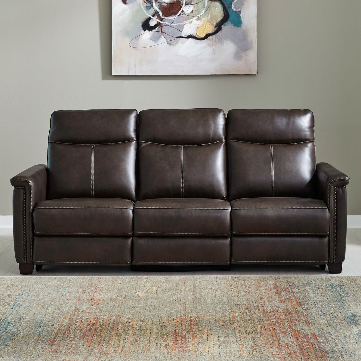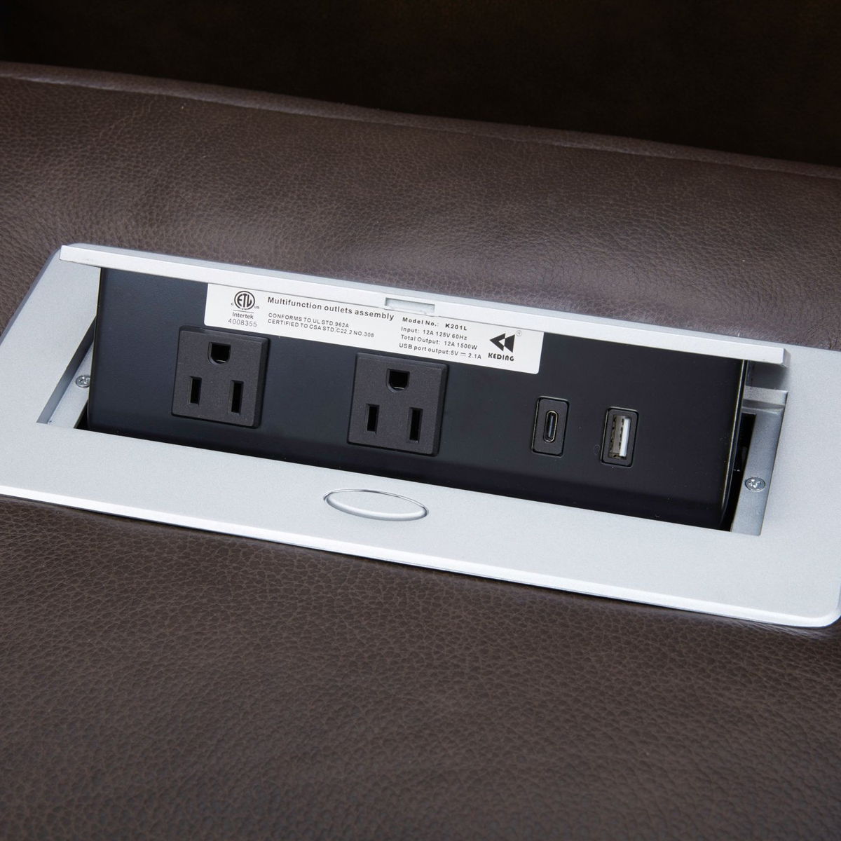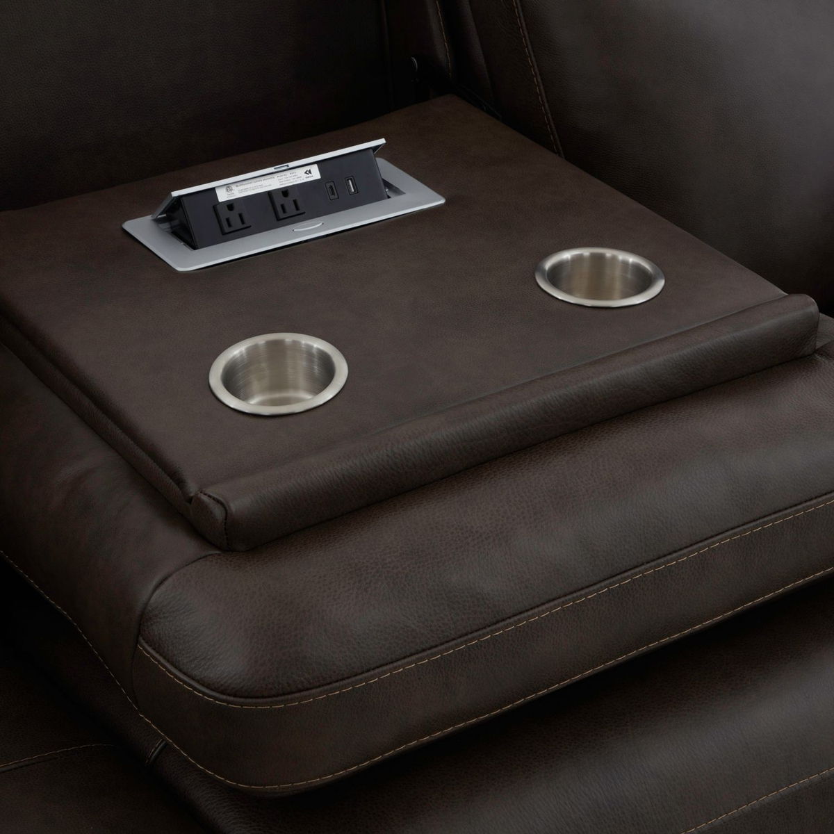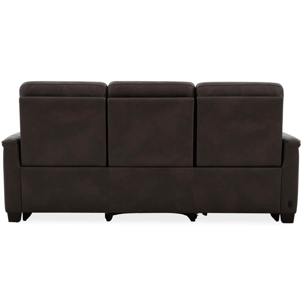 Treat yourself to high style and superior comfort with Crawford’s triple power off-the-floor traditional design. Crawford includes power motion recline, a comfort-high back with power headrest, and power lumber support. Designed to emulate a stationary aesthetic, the silhouette features a fully finished back frame for 360-degree visual appeal. The slender flared arm design that is further embellished with head-to-head decorative nail trim creates an overall scale suitable for small living spaces. Additional features include a drop-down table in the center back of the sofa with a hard surface, cup holders, and USB & USB-C charging ports. Crawford is available in a selection of semi-aniline leather/match applications with heavy grain texture and subtle two-tone coloration that’s finished for active family environments. Let Crawford become the focal point of your living space, where relaxation meets modern technology in perfect harmony.