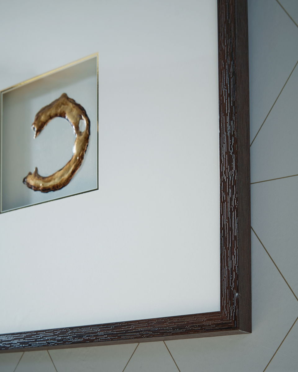 Taking an abstract approach to neutrals, this wall art set seamlessly balances an elevated feel with inviting style. The white and gold images are enhanced with hand painted embellishments, and each piece is beautifully framed in a dark brown shadowbox. Double matting further highlights the curated feel of this collection.