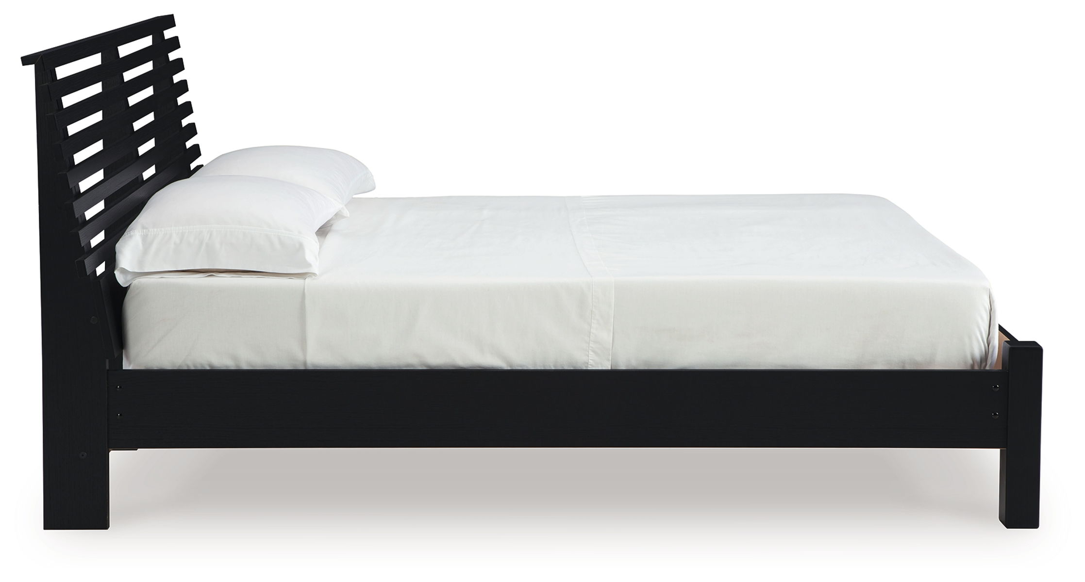 Sophisticated style for the savvy shopper. This panel bed prioritizes affordable, on-trend design. Its subtle replicated texture recalls the natural beauty of wood, highlighting the slatted styling. And a matte finish savvily suits different approaches to modern aesthetics. Mix and match with light and bright hues, or pair with other dark tones for a moody look.
