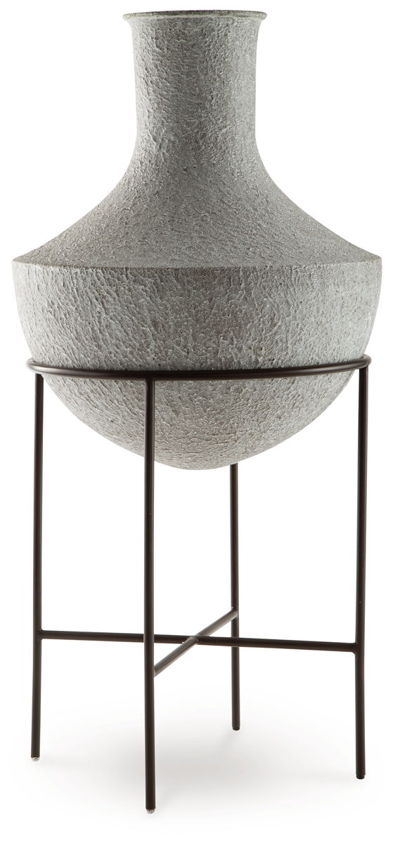 Take an effortlessly inviting approach to floor decor. This vase’s distressed, textured look in a neutral hue pairs with a variety of casual color palettes. An espresso brown stand adds charming contrast to the look. And this vase enthusiastically welcomes faux florals and filler, perfectly adapting to the seasons when you swap out your arrangements.