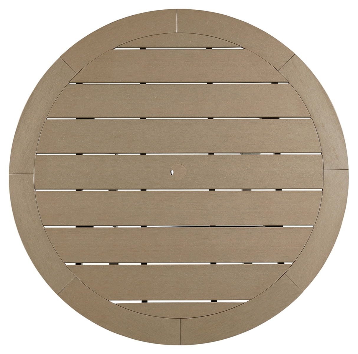 Raise the bar on outdoor living with this round bar table with umbrella hole. Crafted for style, comfort and durability, it caters with a standout two-tone look that pairs driftwood and black finishes for twice the interest. The round table design keeps everyone in the flow of conversation.