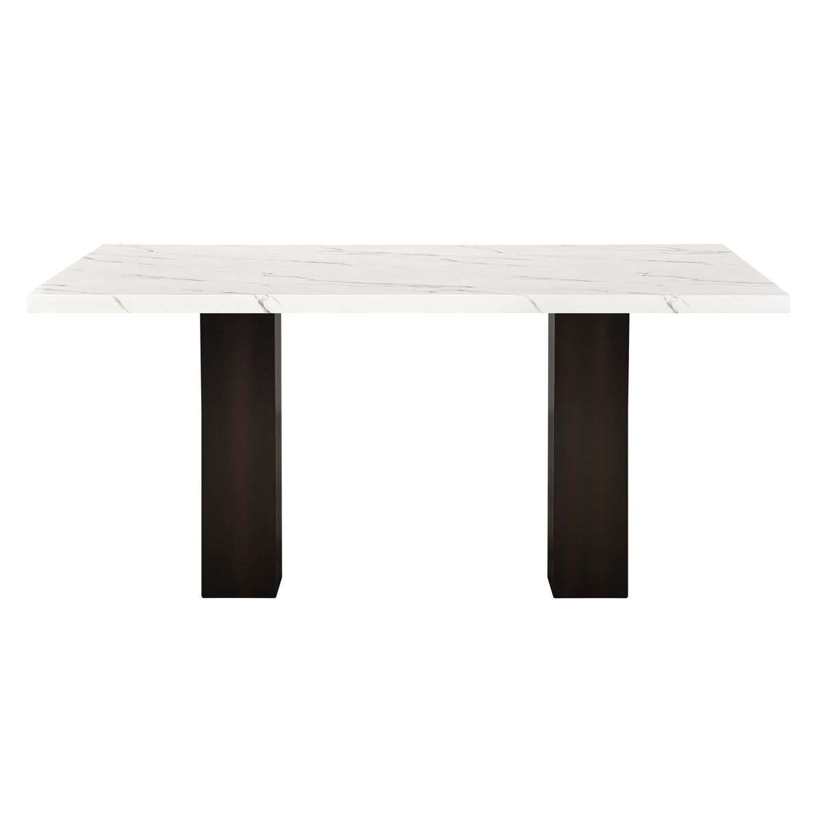 - Contemporary Style: This dining table”s sleek white faux marble tabletop with subtle gray veining provides a modern and luxurious aesthetic. The dark pedestal legs offer a bold contrast and add to the table”s contemporary appeal.