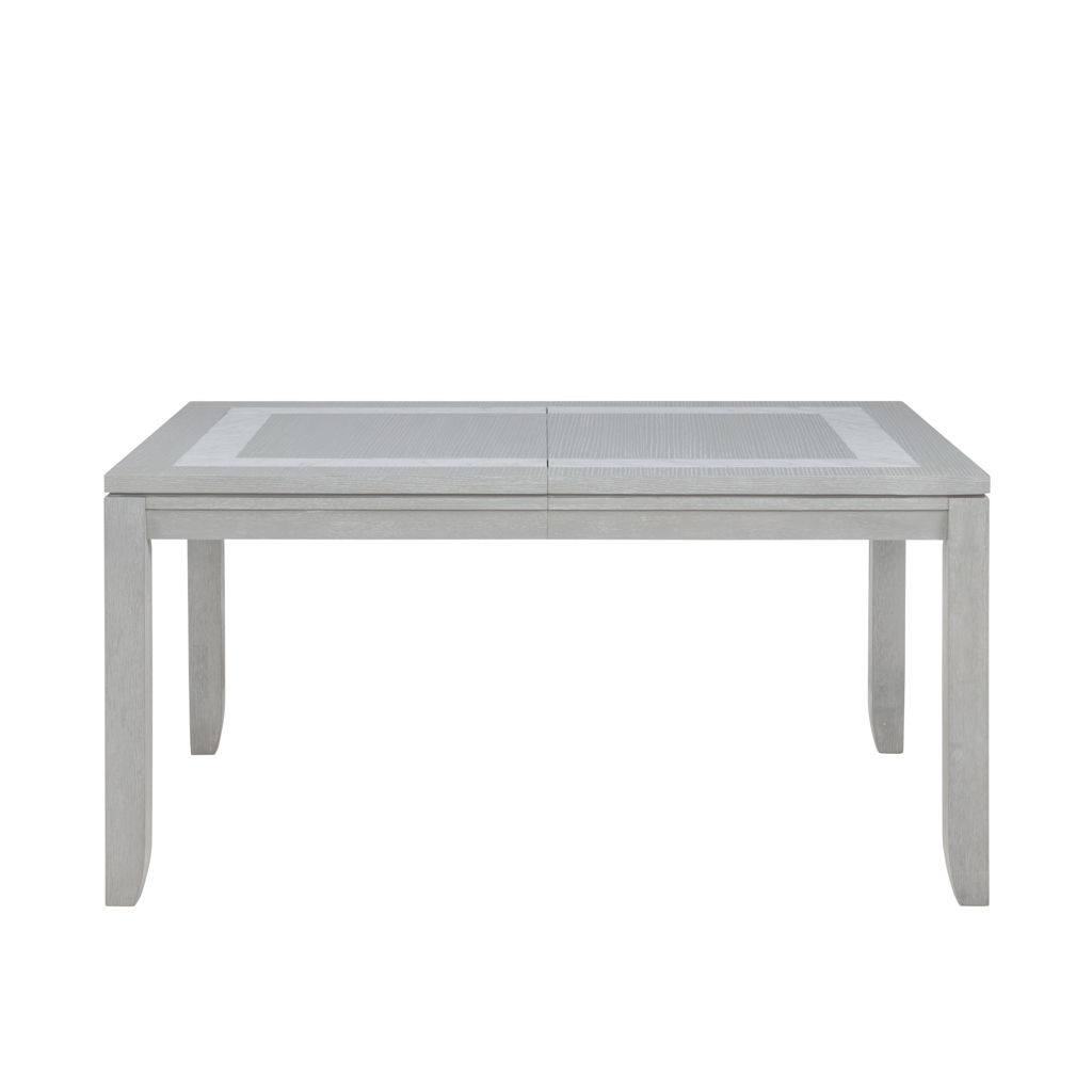 The Fiona Rectangle Dining Table in Mist Gray blends lasting quality with modern elegance. Crafted from solid Rubberwood, engineered wood, and eco-friendly oak-embossed laminate, it features a mist gray finish that highlights the wood’s natural grain. A genuine white marble inlay adds a refined touch, while the extendable top expands from 60″ to 78″ with a 18″ leaf, seating up to 8 guests—perfect for gatherings, daily dining, and timeless style.