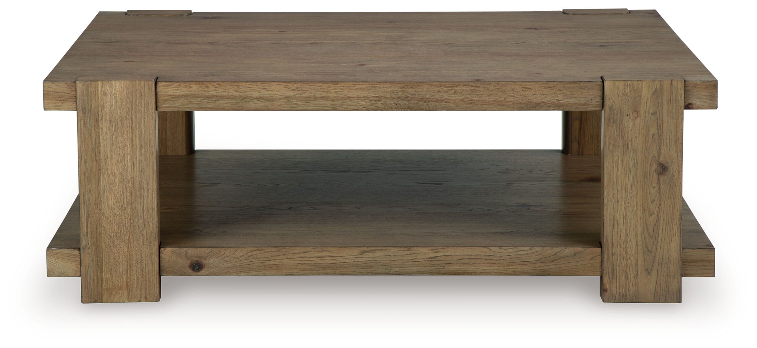 Sleek yet substantial, this coffee table delivers a modern craftsman vibe with clean lines and natural appeal. The light oak finish highlights the wood’s natural beauty, while the thick slab construction lends an architectural feel. With open shelving for storage and display, this table blends style and function effortlessly.