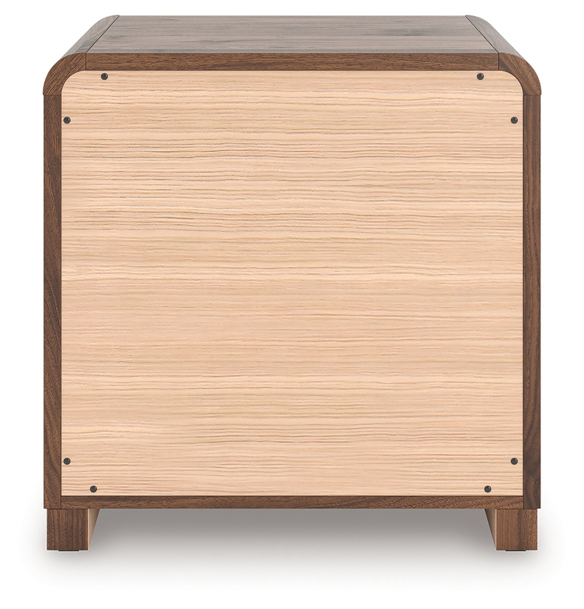Grace your restful retreat with an added dose of refinement. This nightstand showcases a stunning rich brown wood tone, with sleek drawer pulls for an added layer of luxury. A rounded top softens the silhouette, elevating the look. It’s curated, contemporary and utterly chic.