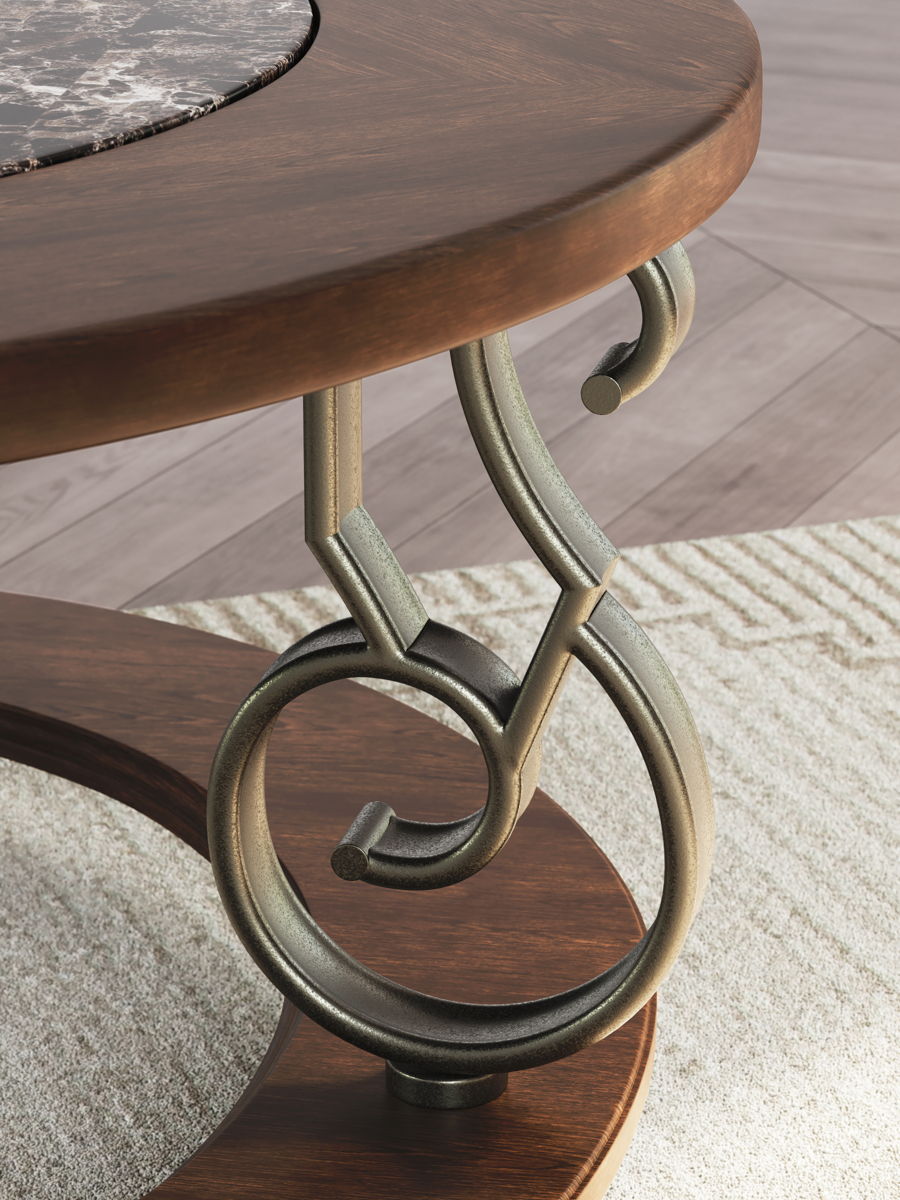 This coffee table is nothing short of stunning. A rich, warm brown finish exudes opulent elegance, while ornate metal legs add a touch of timeless sophistication. It’s perfect for displaying your delicious decor in grand style.