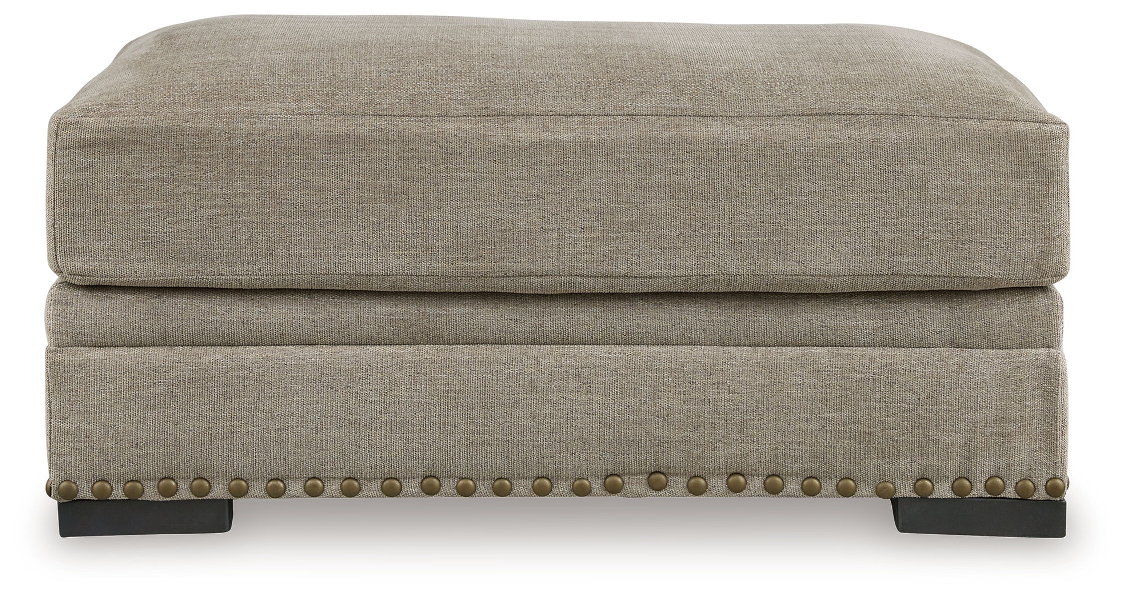 Looking to enhance your home’s visual appeal? This ottoman offers sophisticated design, comfort and elegance with tonal colors and nailhead accents. Enjoy optimal coziness with luxurious soft upholstery and a feather-blend cushion. Perfect for modern spaces, it’s just the spot to sit back and relax in style.