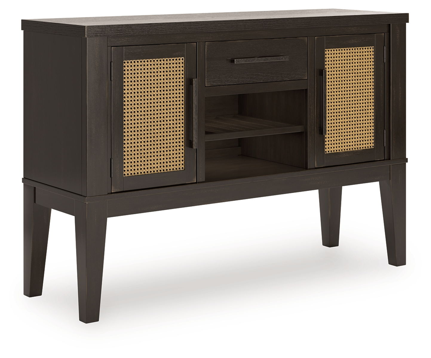 Urban Contemporary design with a rustic vibe. Made with hardwood solids, and thick rustic oak veneer. Natural wood may display natural weathering, unique cracks, splits, knots, saw marks or other organic features unique to each piece. Eclectic natural oak and black finish scheme for a mix and match design style. Sturdy chunky legs support a thick table top with a rustic oak finish.