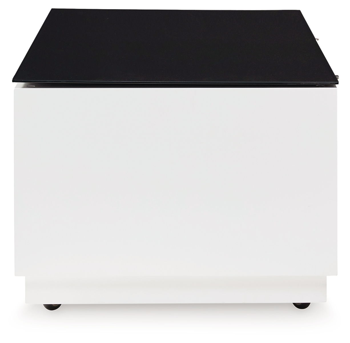 Combining a high-gloss white finish with a black glass tabletop, this coffee table proves opposites really do attract. It’s the perfect blend of modern style and functionality, with two roomy drawers for storing essentials and a large open display shelf for decorative items. Want to rearrange the furniture? Casters make it easy to adapt to any situation.
