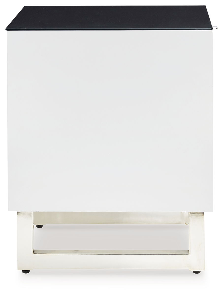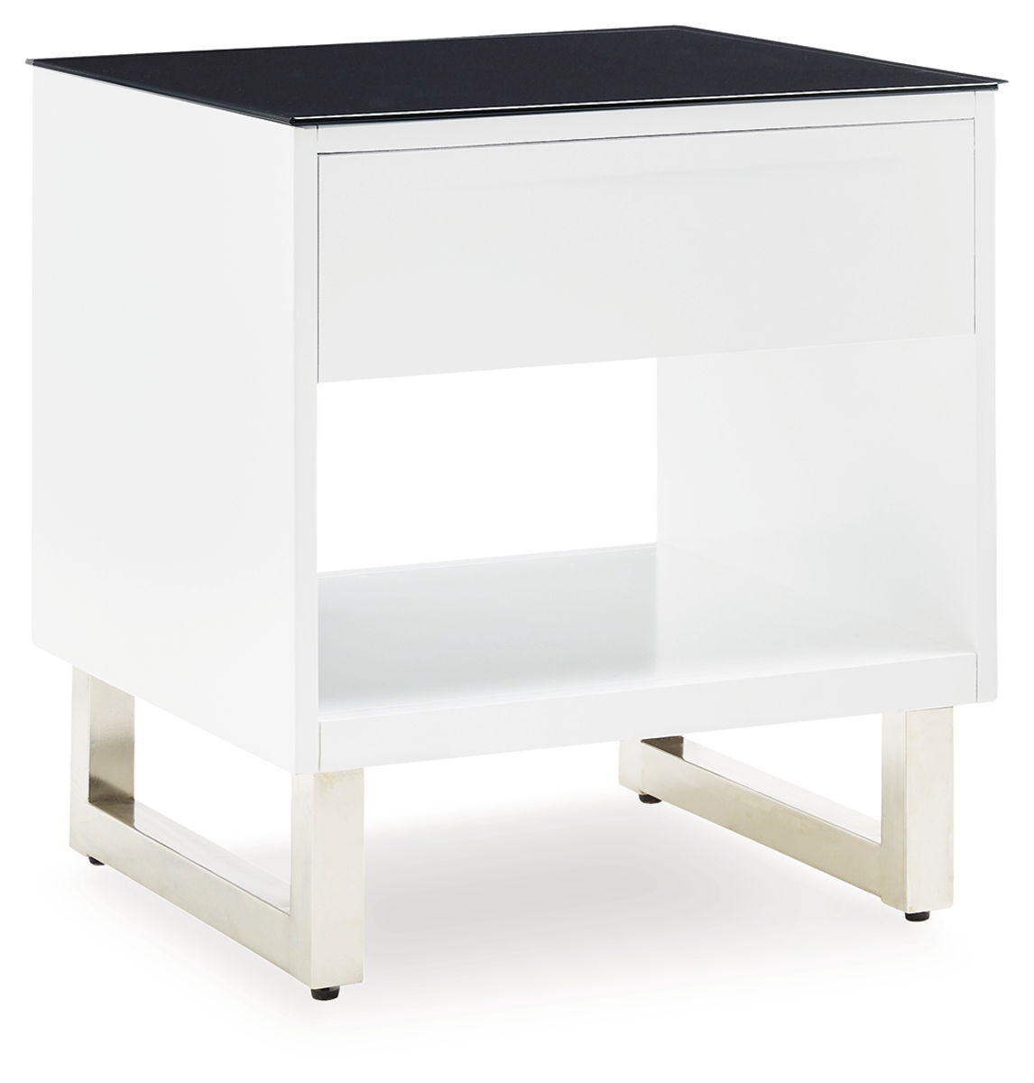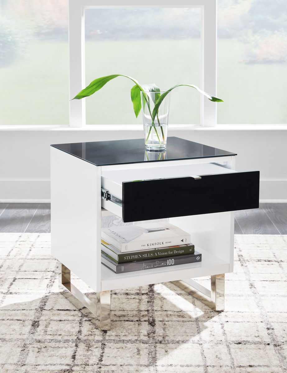 Combining a high-gloss white finish with a black glass tabletop, the Gardoni end table proves opposites really do attract. It’s the perfect blend of modern style and functionality, with a spacious drawer and open cubby for keeping media needs close at hand. What a smart choice on so many levels.