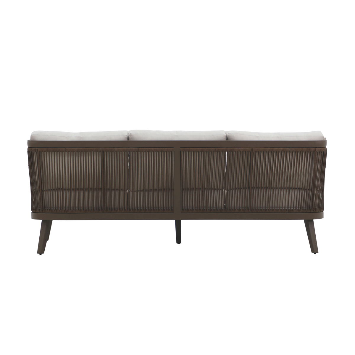 - Contemporary Design: With clean lines, neutral tones, and a focus on sleek, functional design, this outdoor furniture embodies modern sophistication. The seat backs showcase a woven rope pattern, delivering an open and airy ambiance while offering solid structural support. The evenly spaced vertical strands enhance the minimalist aesthetic, adding texture and style to any outdoor space.