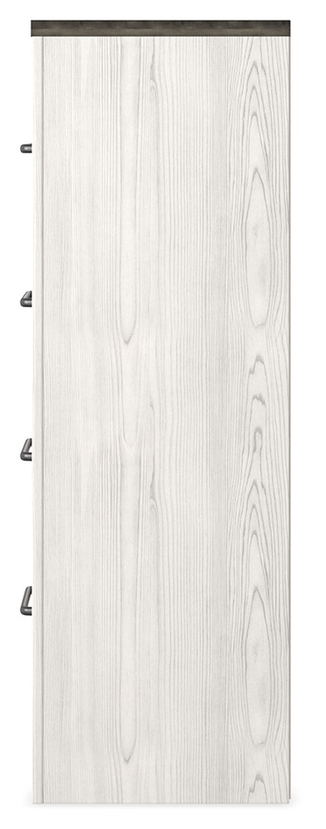 Cool, clean and casually modern. This chest’s wispy whitewash and gray finish sets the tone for your calming sanctuary. Large linear pulls add dimension and authenticity. Four smooth-gliding drawers neatly accommodate your wardrobe needs.