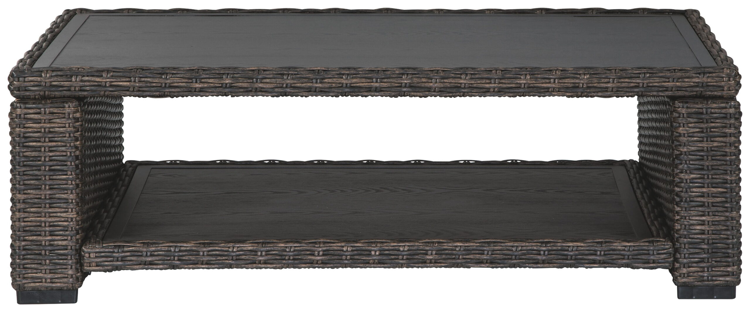 Style. Comfort. Quality. Value. This outdoor coffee table really goes to town, giving you the total package for outstanding outdoor living. Crafted to withstand the elements, this outdoor table’s resin wicker base and rust-proof aluminum frame ensure carefree living, while the aluminum surfaces provide stylish appeal. Cool, clean lined and casual, it’s perfect for use inside or out.