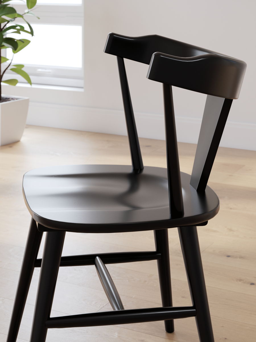 Small spaces don’t mean you have to sacrifice big style. This chair sets the stage for casually cool dining. Its wrap-around back beautifully goes with the flow, while the black finish adds a layer of urban industrial flair. Merging everyday function with inviting design, it’s a simply chic addition to your dining room.