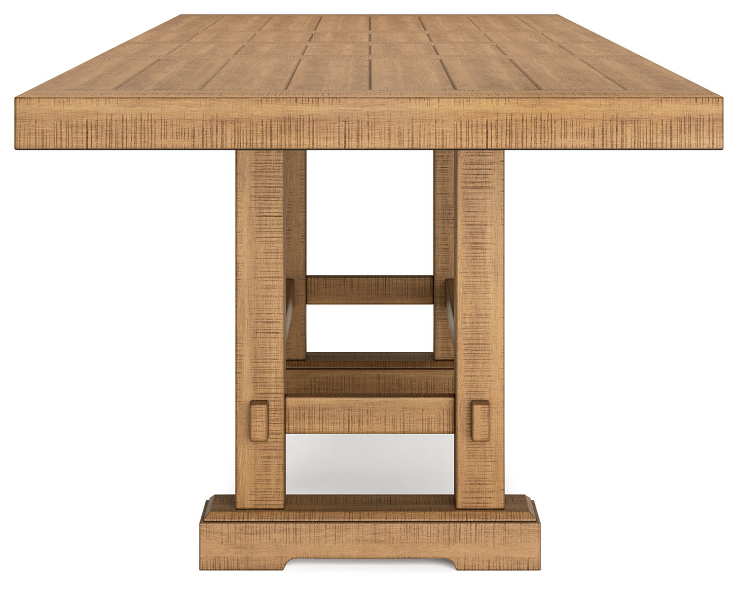This counter height dining table is a favorite for casual rustic interiors. Offering plenty of seating space, it’s your answer for everyday living and impromptu guests. And the distressed pine finish, double trestle base and two extension leaves? Deliciously charming and versatile.