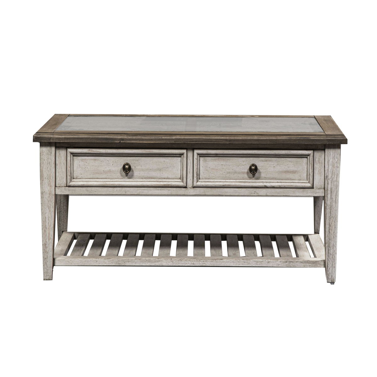 Heartland – Rect Ceiling Tile Cocktail Table – Antique White / Tobacco Tops