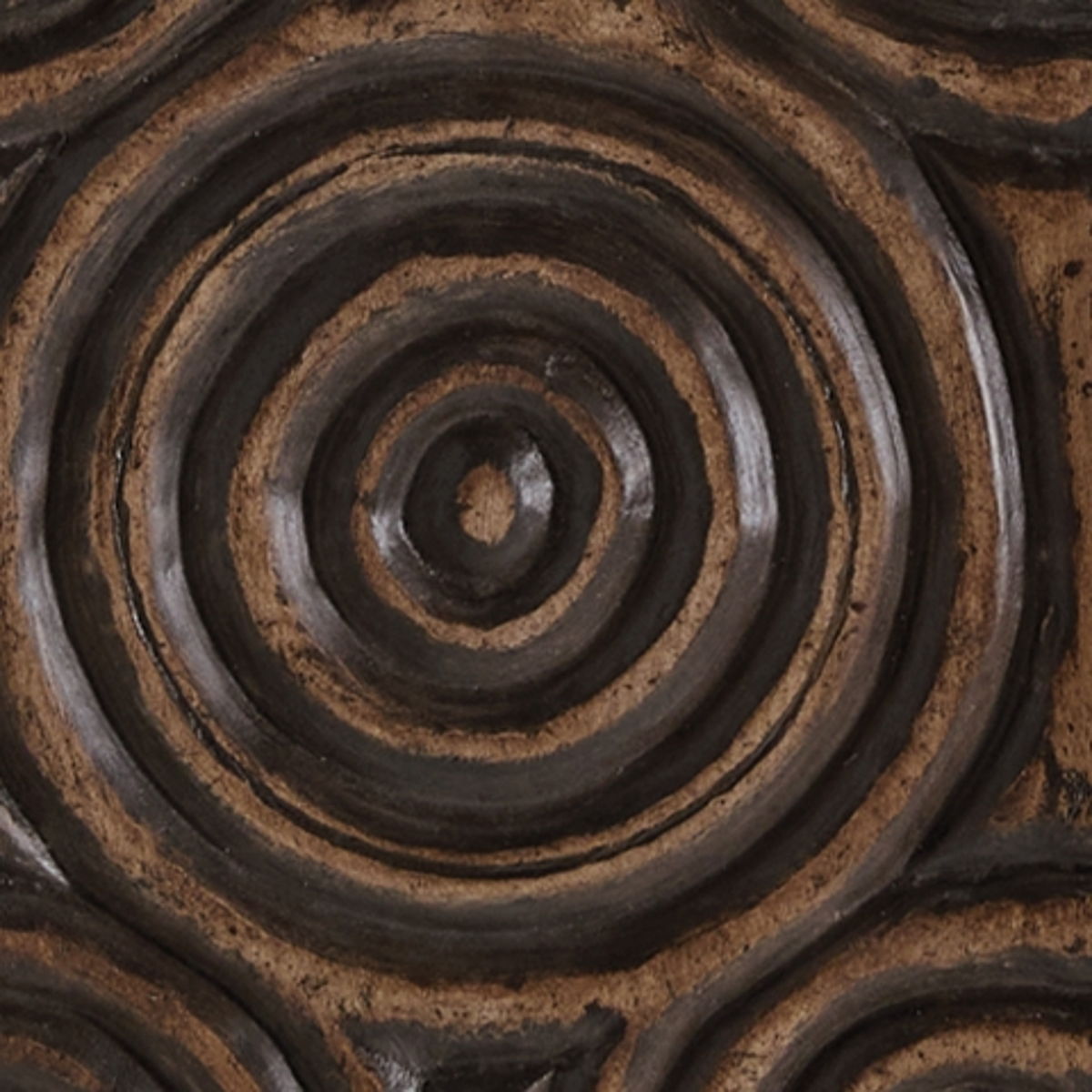 This table lamp impresses with its versatile neutral character and geometric appeal. A pattern of circles and curves beautifully contrasts with the clean-lined silhouettes of the base and shade. With an antiqued brown finish lending a vintage vibe, this lamp is a bright idea for classic or casual spaces.